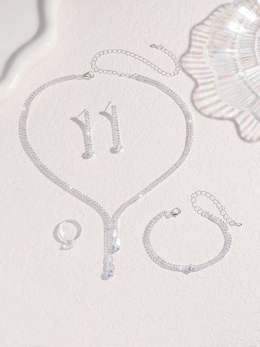 SHEIN طقم 5 قطع مجوهرات بزركونيا قطرات ماء