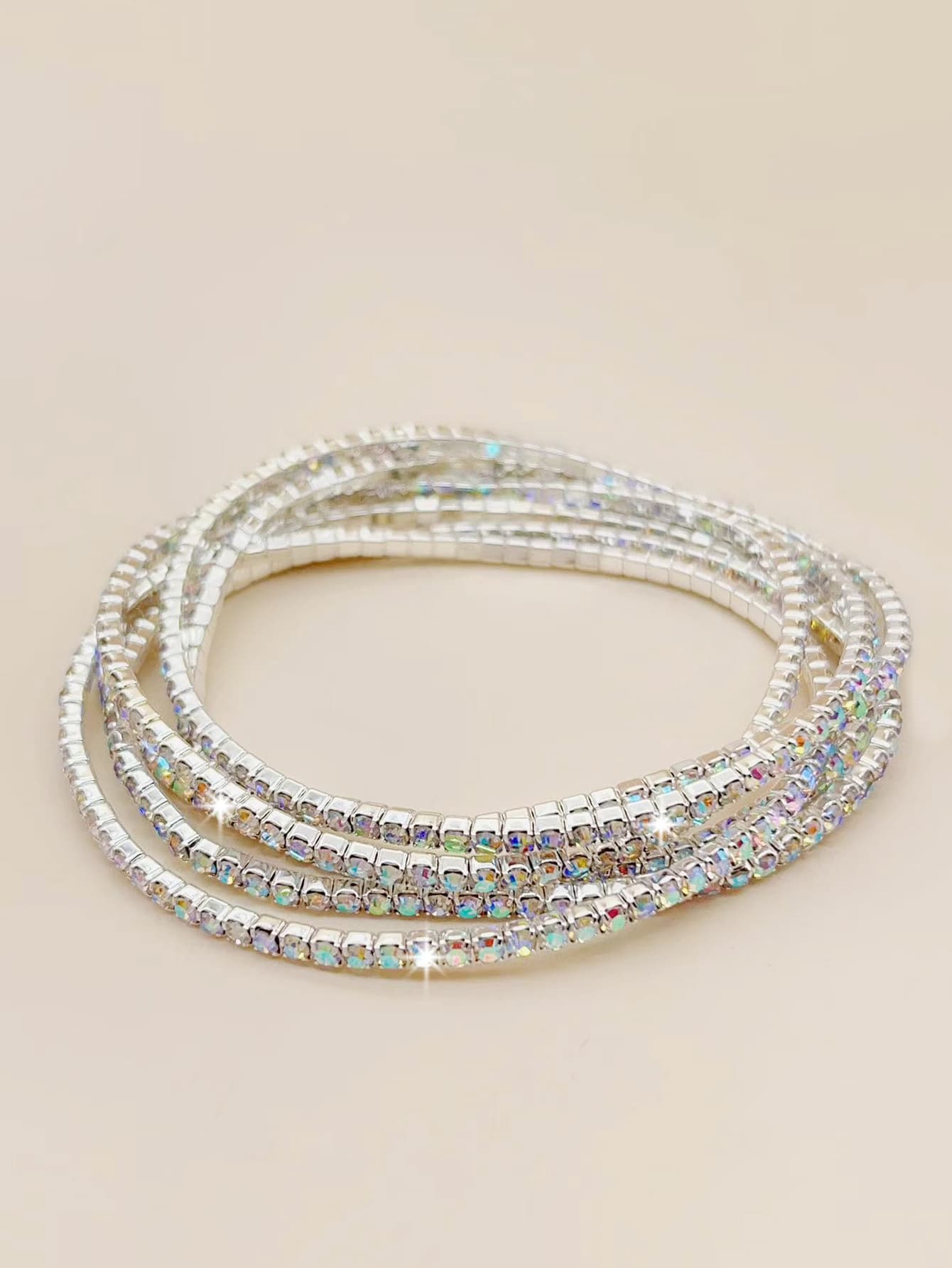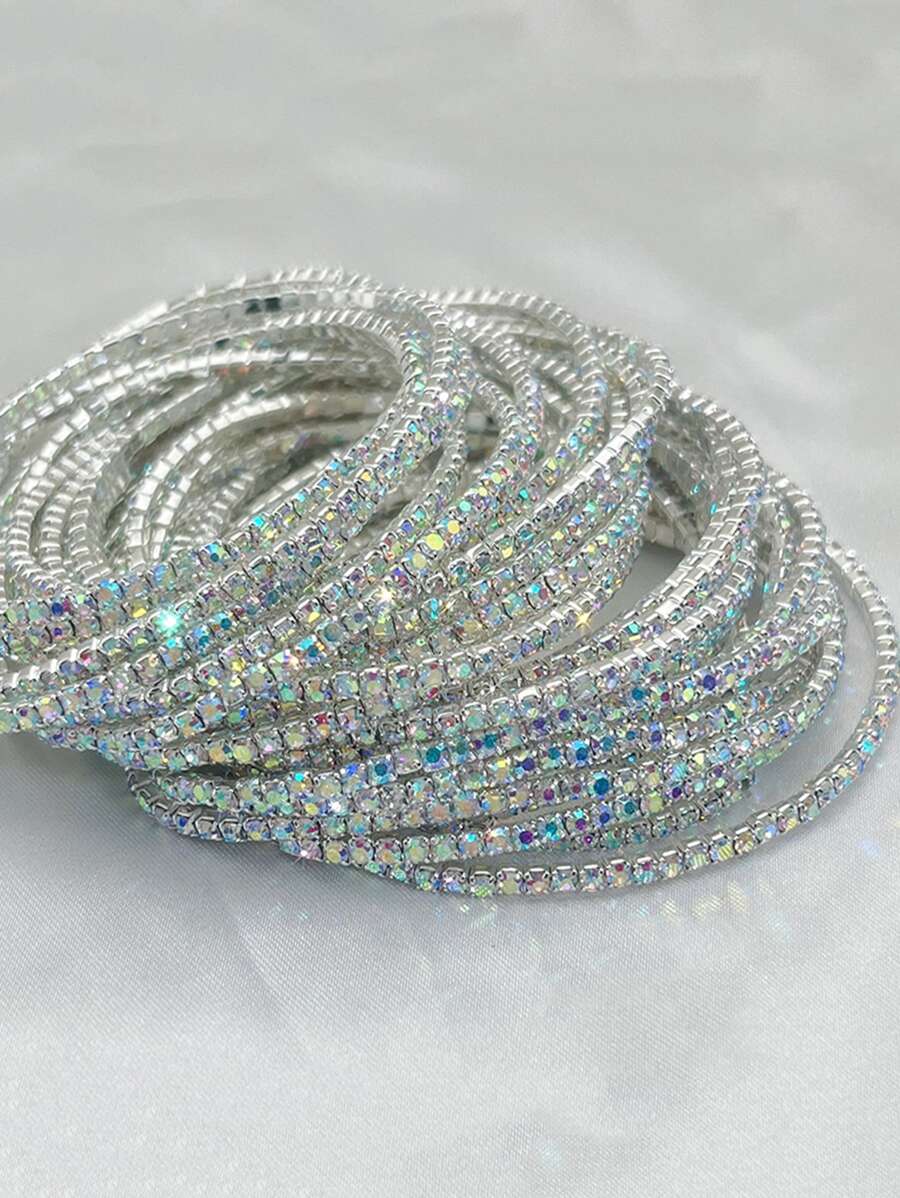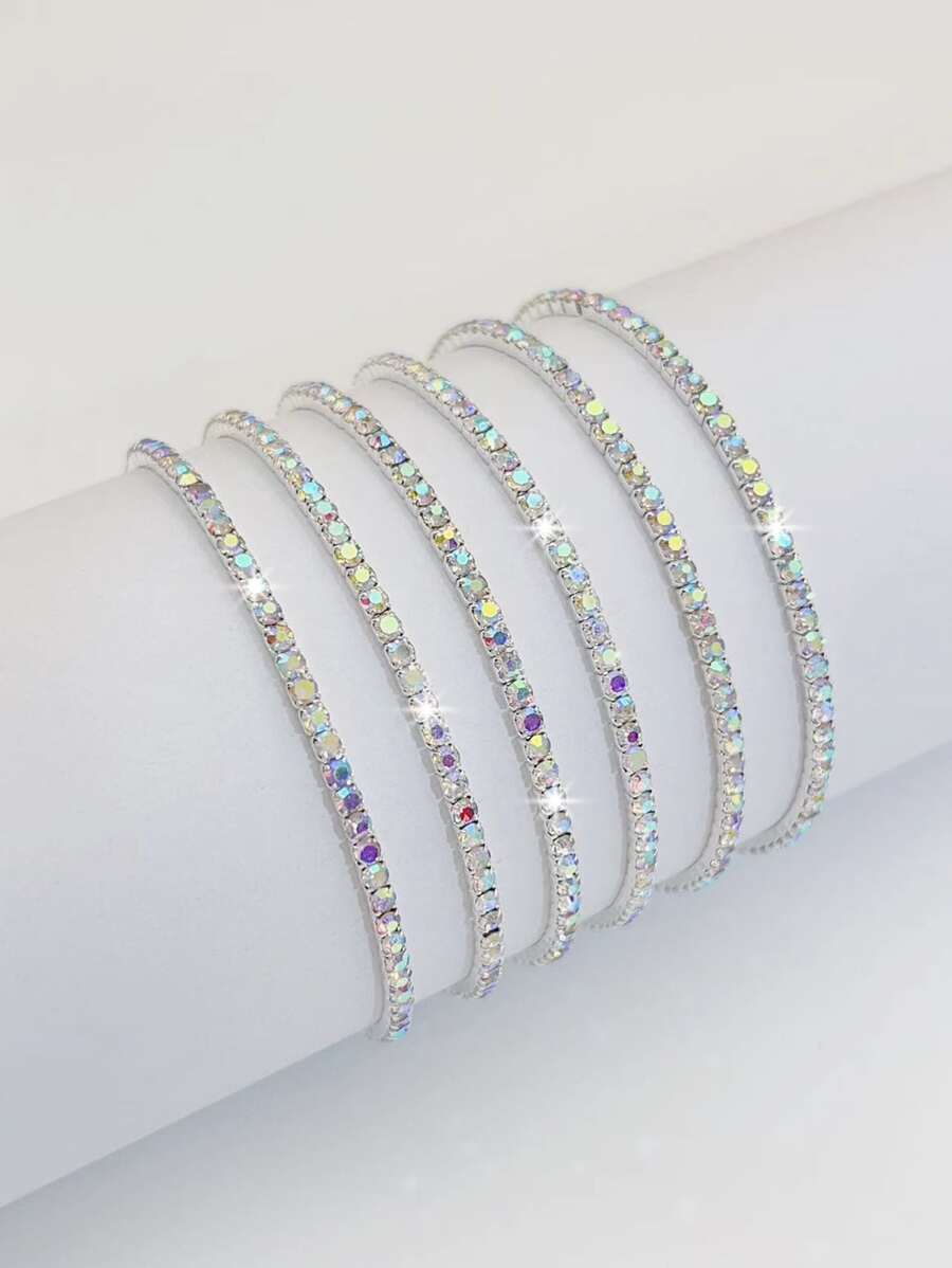 SHEIN طقم 6 أساور شفافة فضية مزينة بالزركونيا