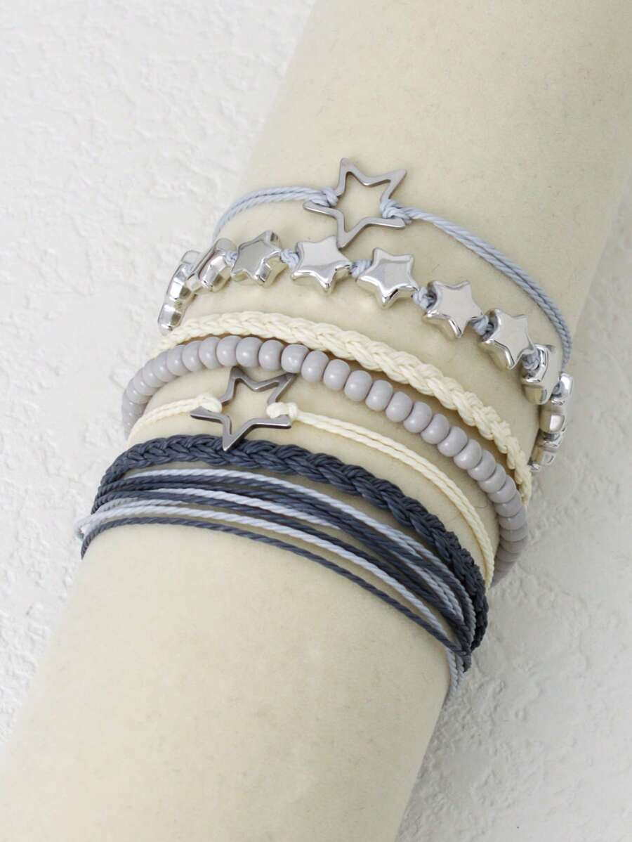 SHEIN طقم 7 أساور خرز بوهيمي متعددة الطبقات مزينة بالنجوم
