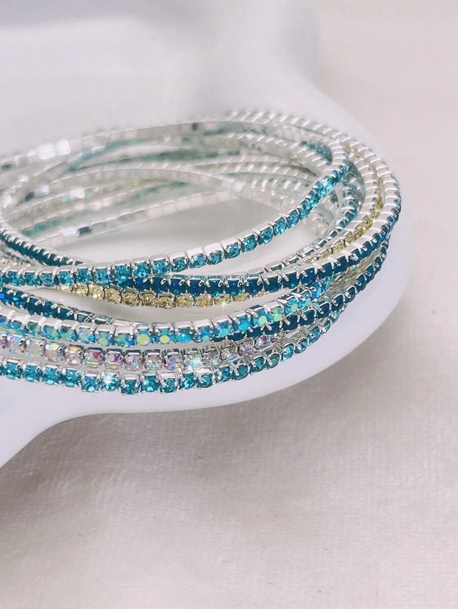 SHEIN طقم 8 أساور بلورية رقيقة متعددة الألوان