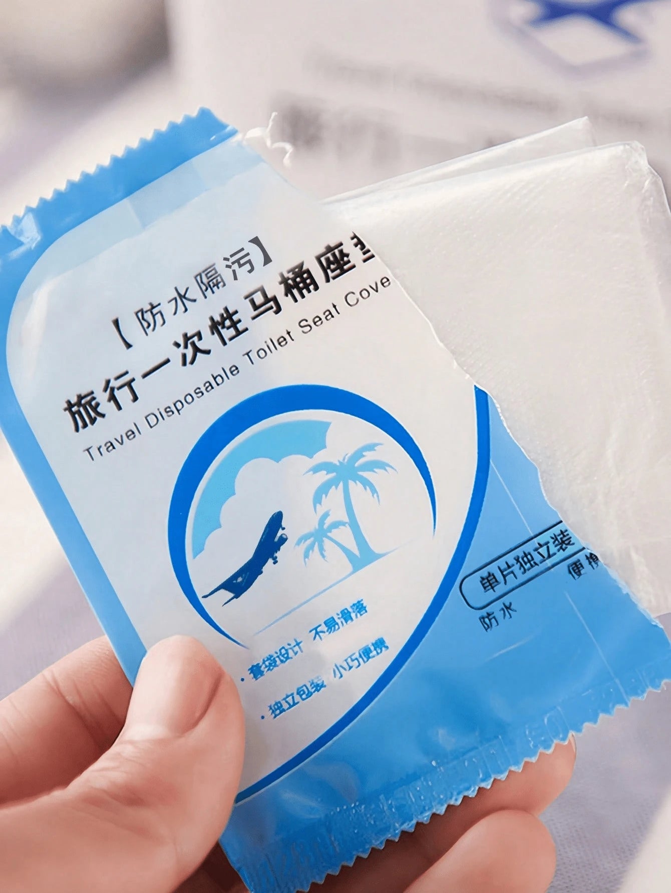 أغطية مرحاض صحية وقابلة للحمل، مقاومة للماء، مثالية للسفر والطائرة والفندق والتخييم.المواصفات: