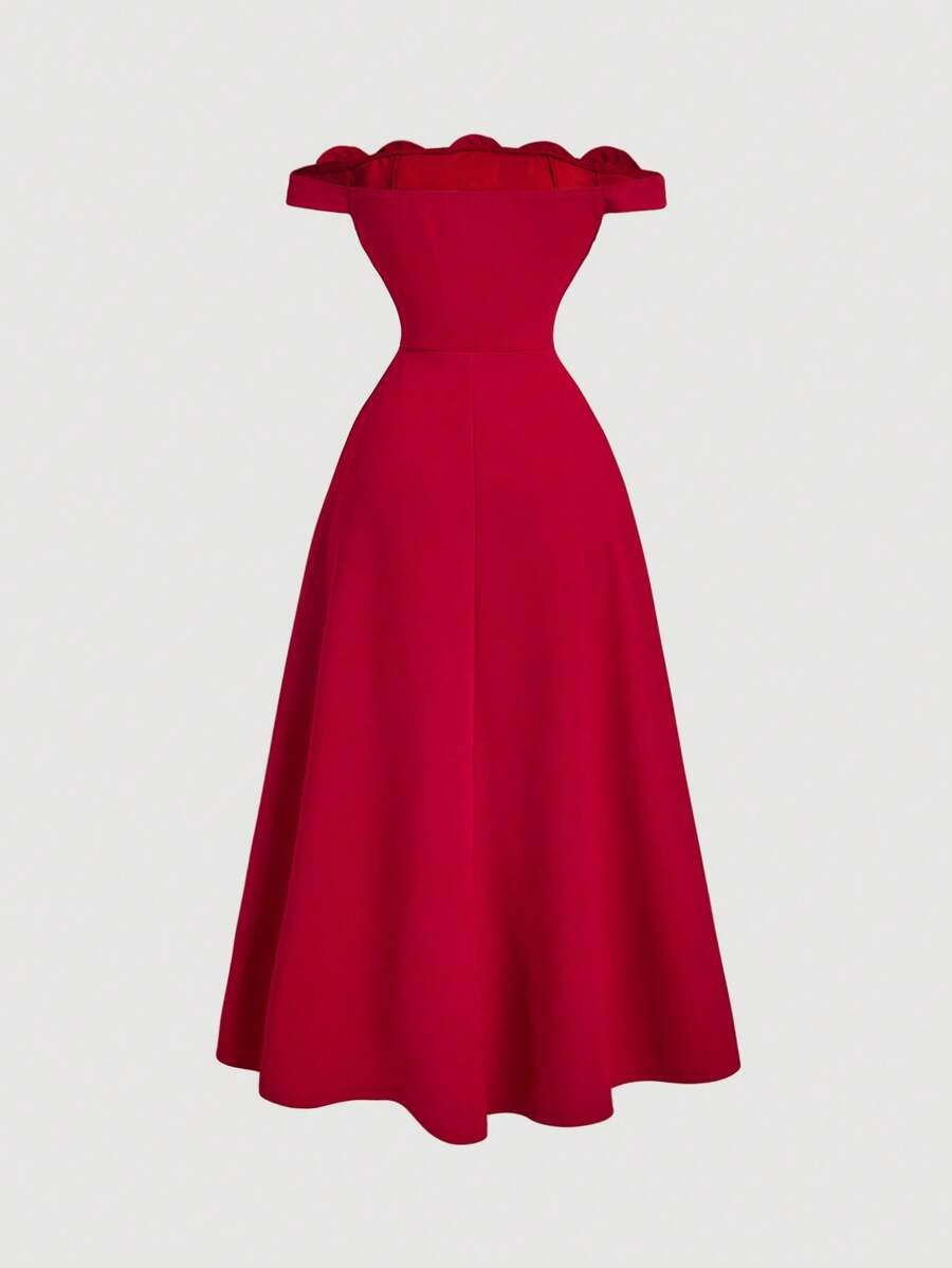 SHEIN MOD فستان أحمر ناعم بطابع ملكي وزهور