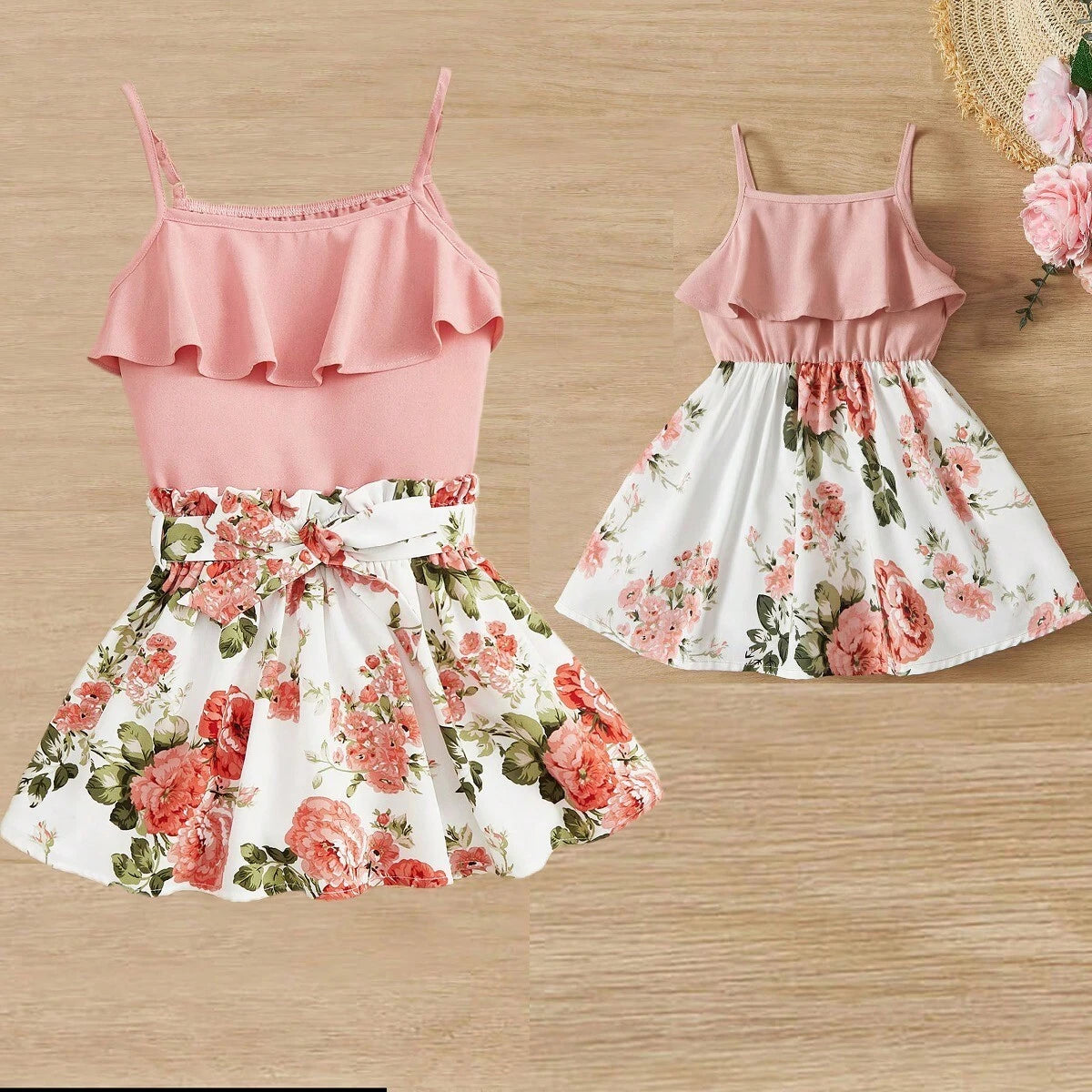 SHEIN فستان بنات حمالة للأطفال مطبوع بزخارف الورود