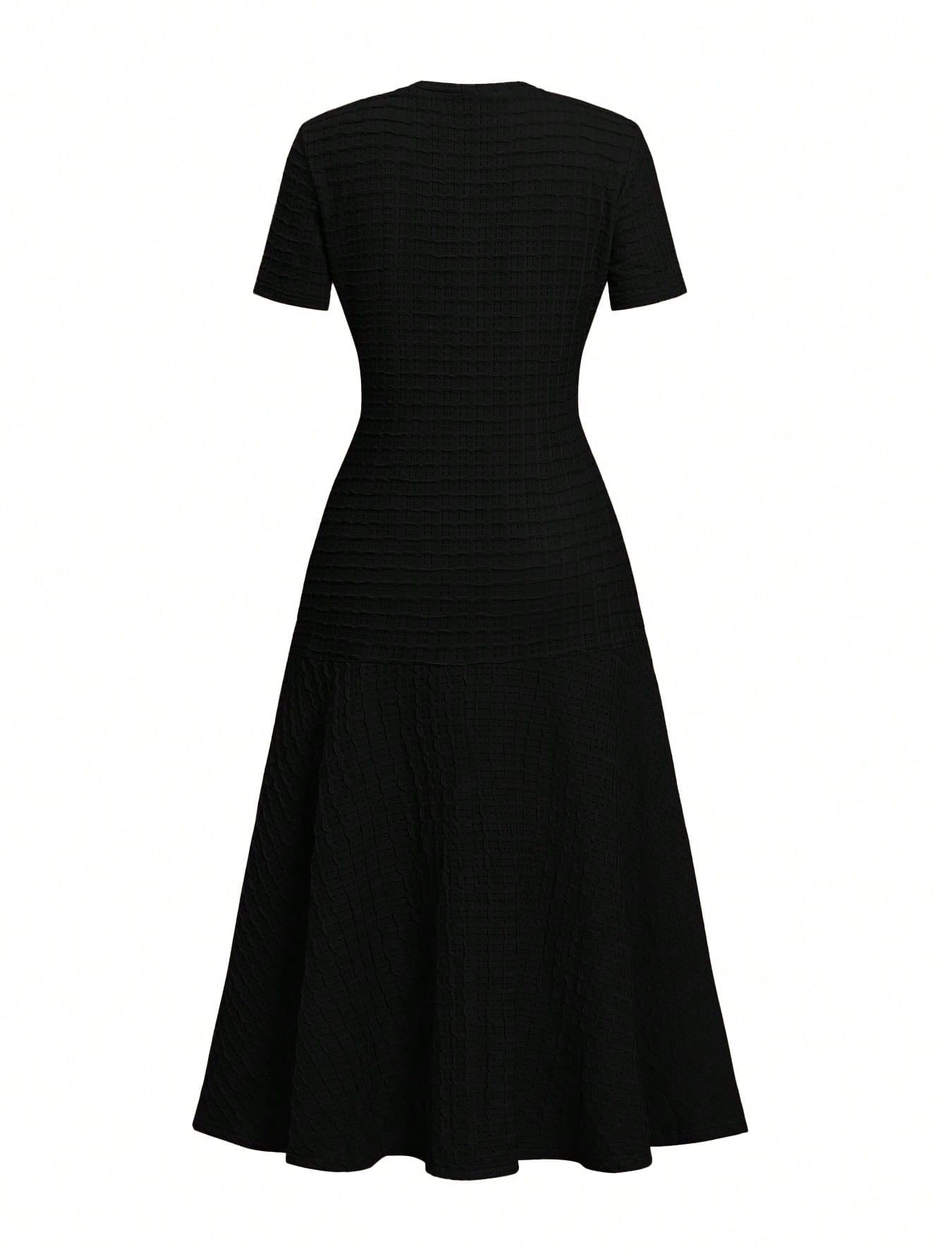 🖤 فستان نسائي ربيعي بياقة مستديرة وأكمام قصيرة