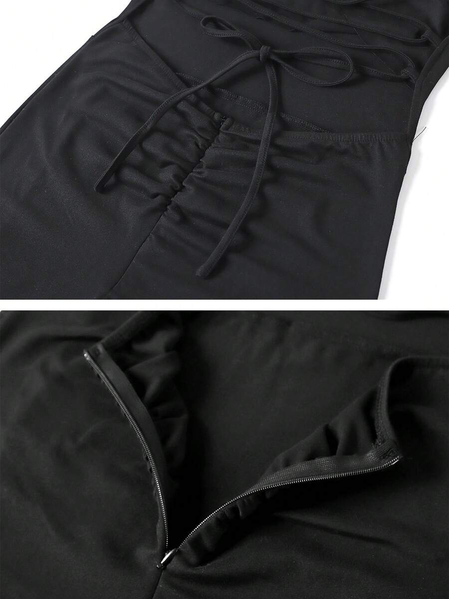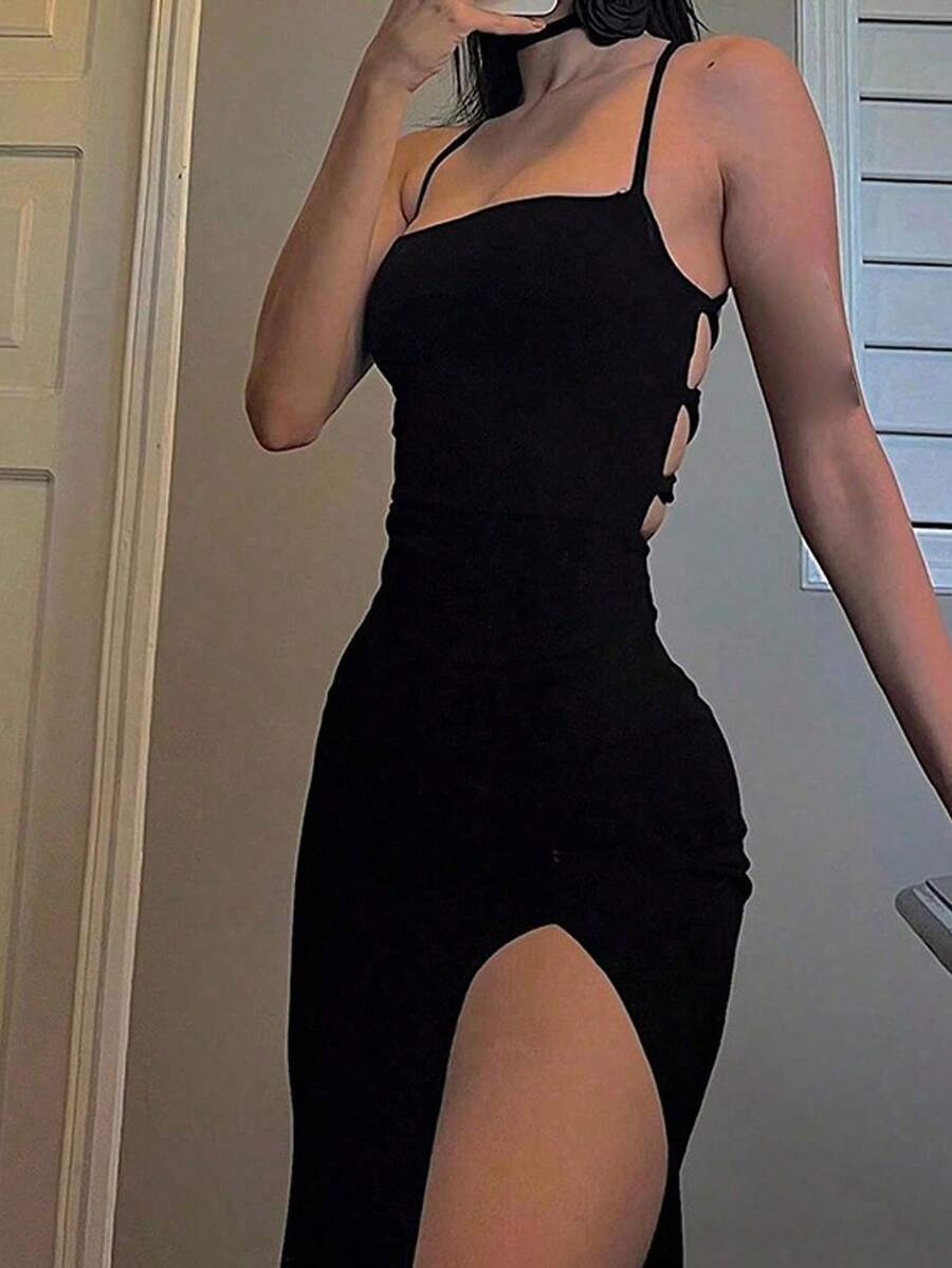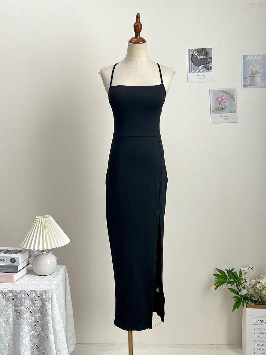 SHEIN فستان سليب أسود أنيق بأربطة ظهر وشق جانبي