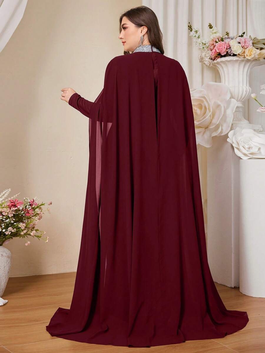 SHEIN Coutiva فستان سهرة عنابي ماكسي أنيق