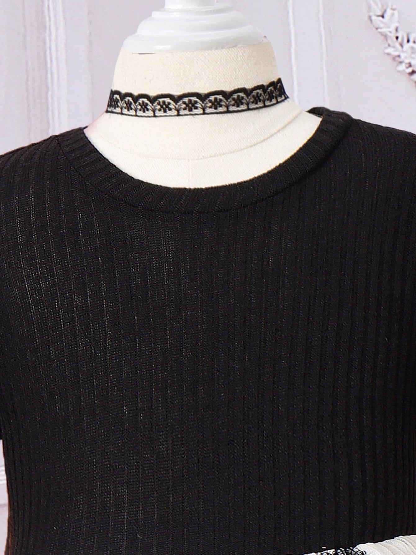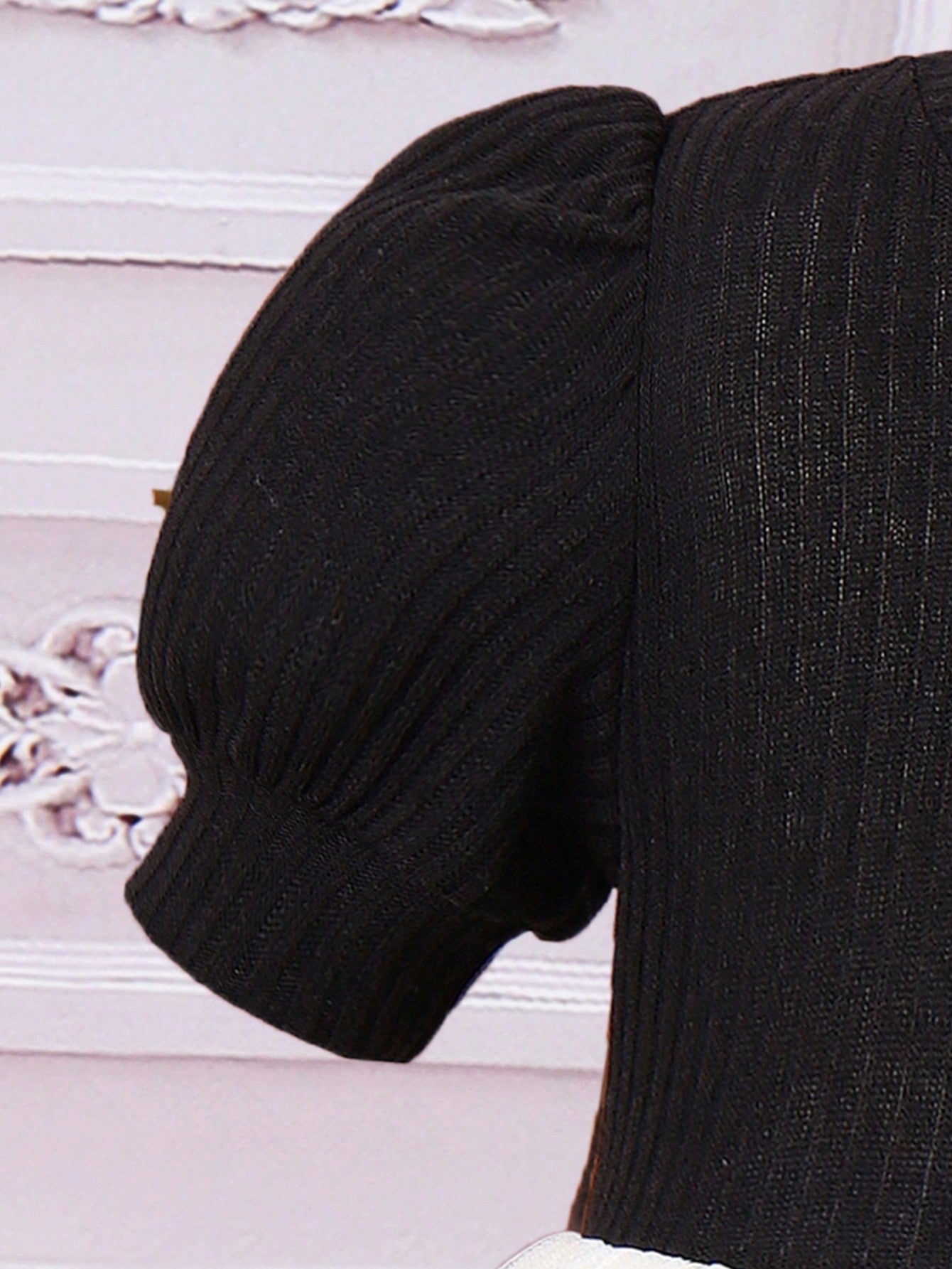 SHEIN فستان (صغير) بأكمام منتفخة وقصة مطرزة بالفراشة وتول مزين بملمس متباين وحشو