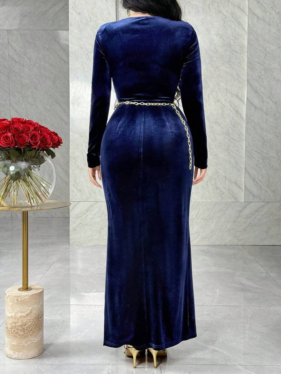 SHEIN Modelyn فستان مخملي بياقة مربعة بلون أزرق كحلي