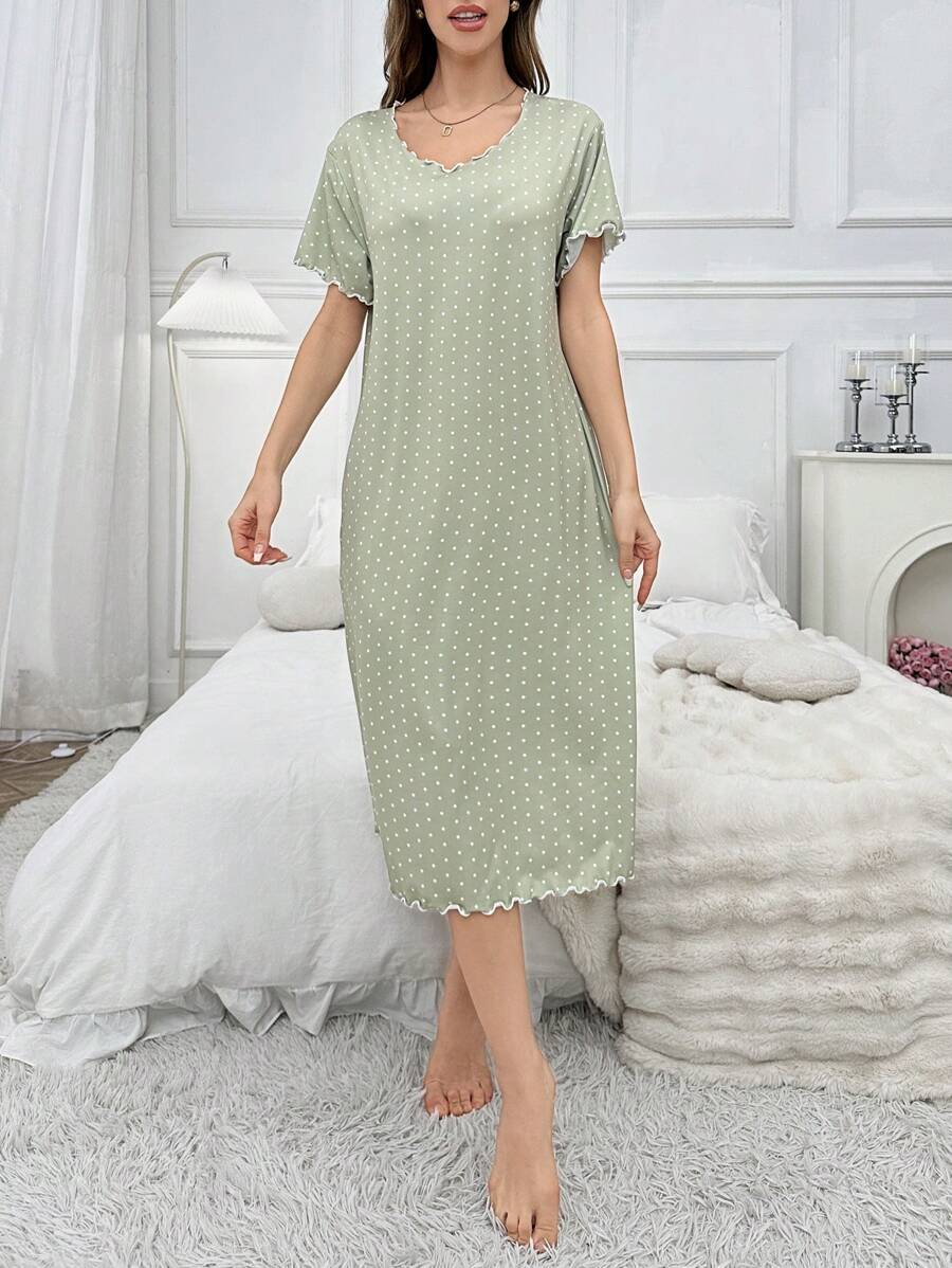 SHEIN فستان نوم طويل بطبعة منقطة مع حافة برسيم