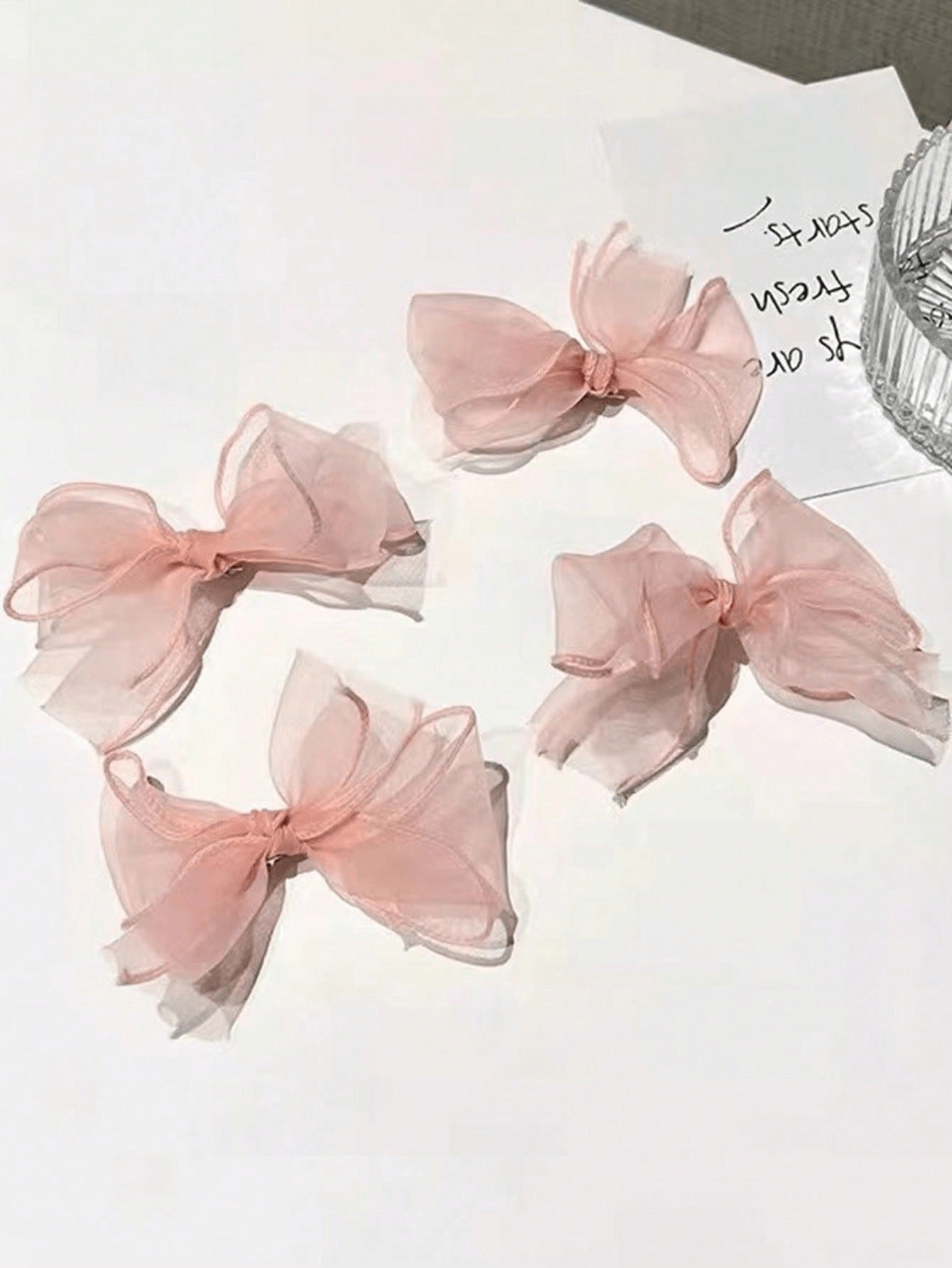 قطعتين من مشابك الشعر بشكل فراشة، مصنوعة من شبكة ناعمة بلون وردي رقيق، تضيف لمسة أنثوية خفيفة لتسريحات الشعر. شكلها بسيط لكن ملفت، مناسبة للمدرسة أو الطلات الحلوة في المناسبات.