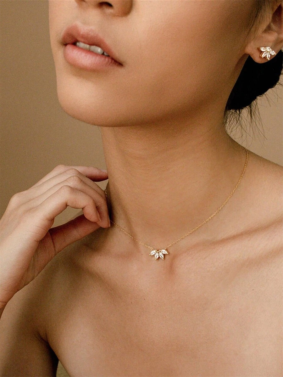SHEIN قلادة تعليق ذهبية من النحاس والزركونيا