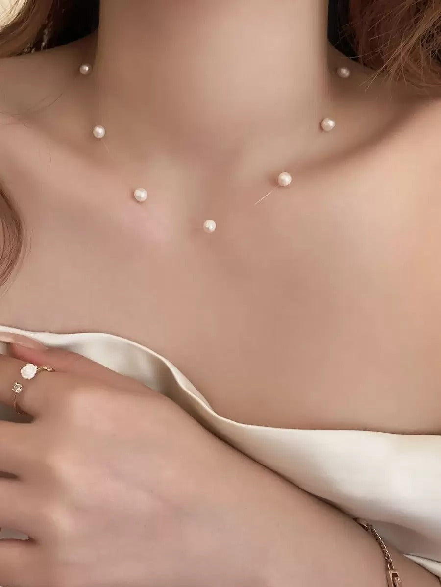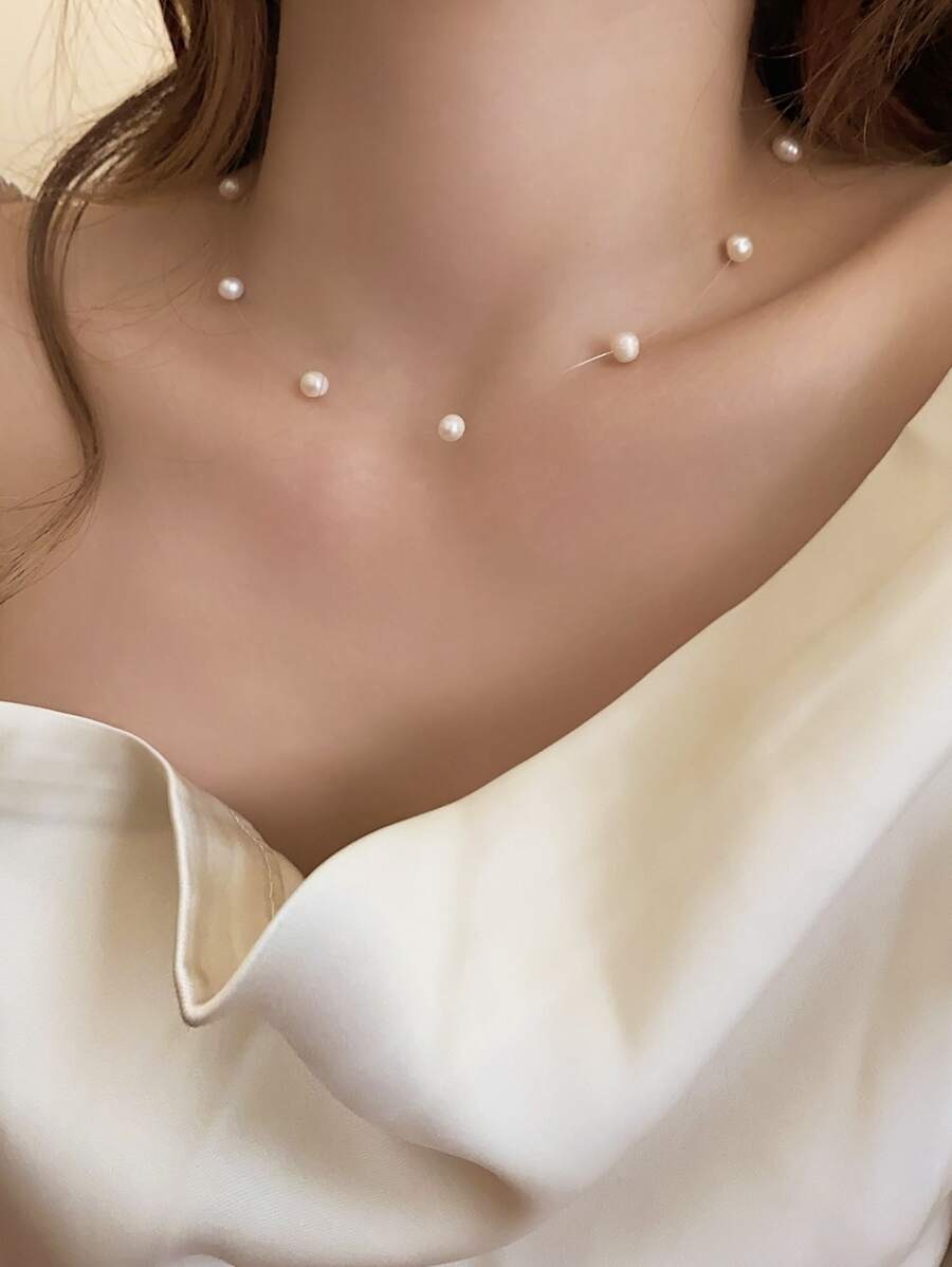 SHEIN قلادة لؤلؤ اصطناعي بيج أنيقة