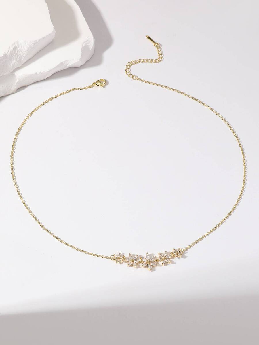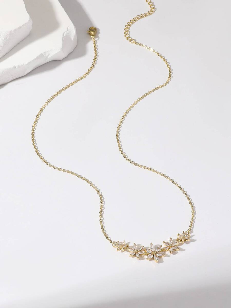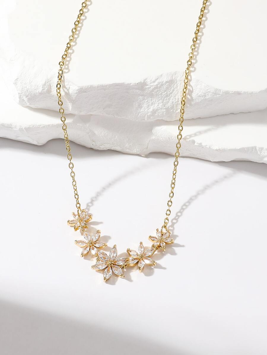 SHEIN قلادة زهرة وحجر ياقوت ذهبية أنيقة