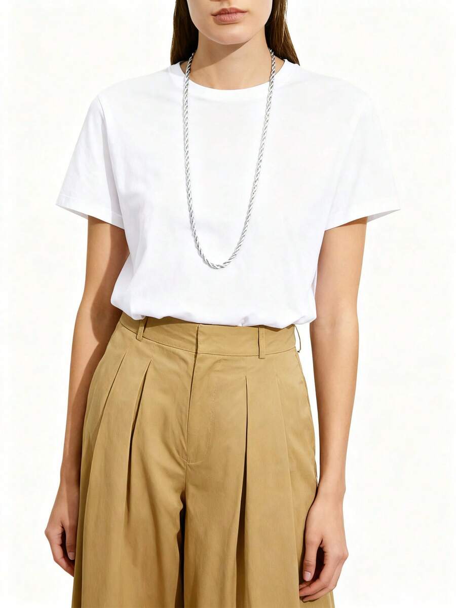SHEIN قلادة سلسلة ستانلس ستيل بسيطة مقاومة للبهتان