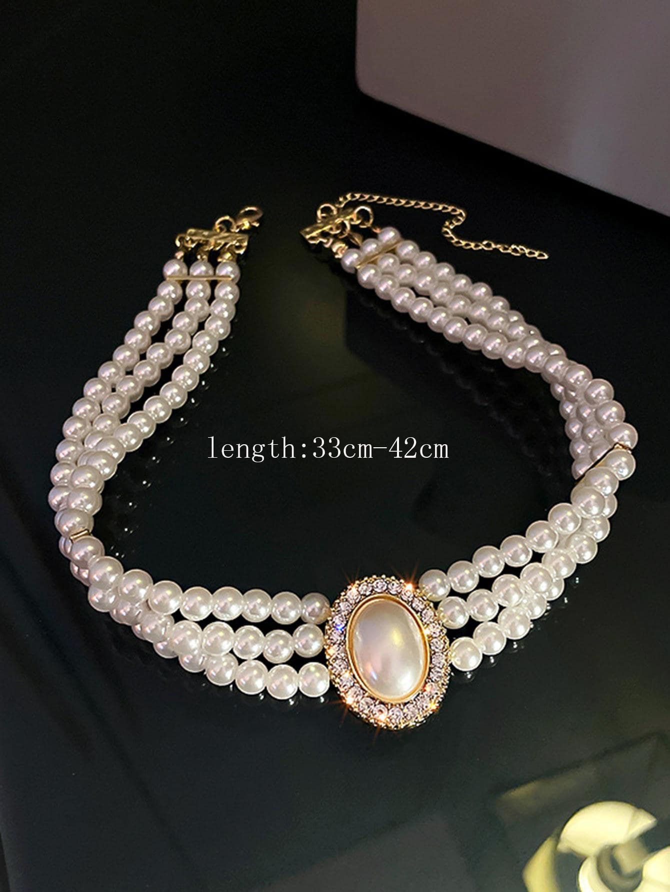 SHEIN قلادة شوكر مزينة بالكريستال والخرز الفاخرة