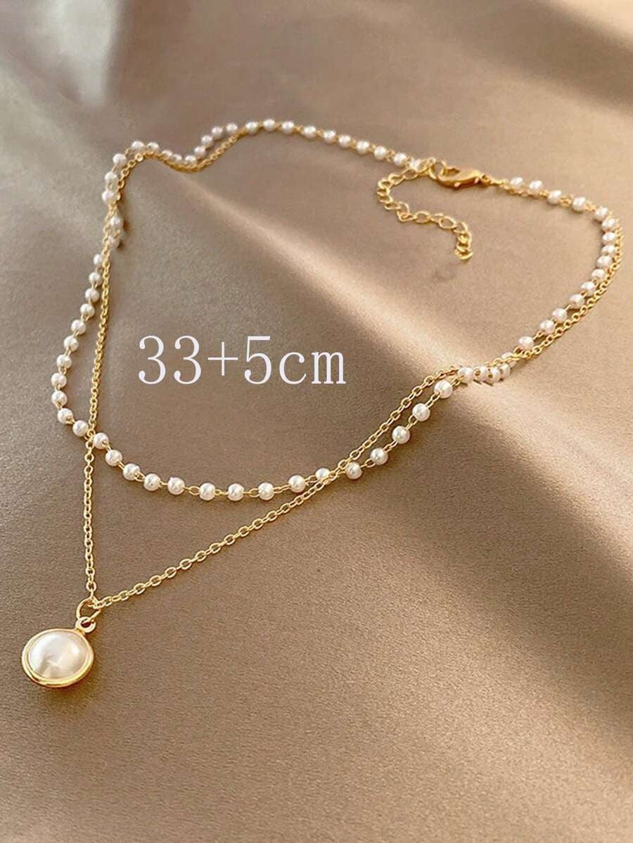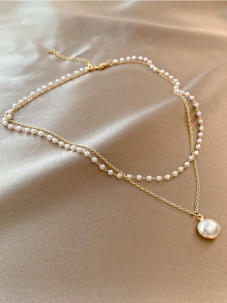SHEIN قلادة بيضاء متعددة الطبقات باللؤلؤ الصناعي