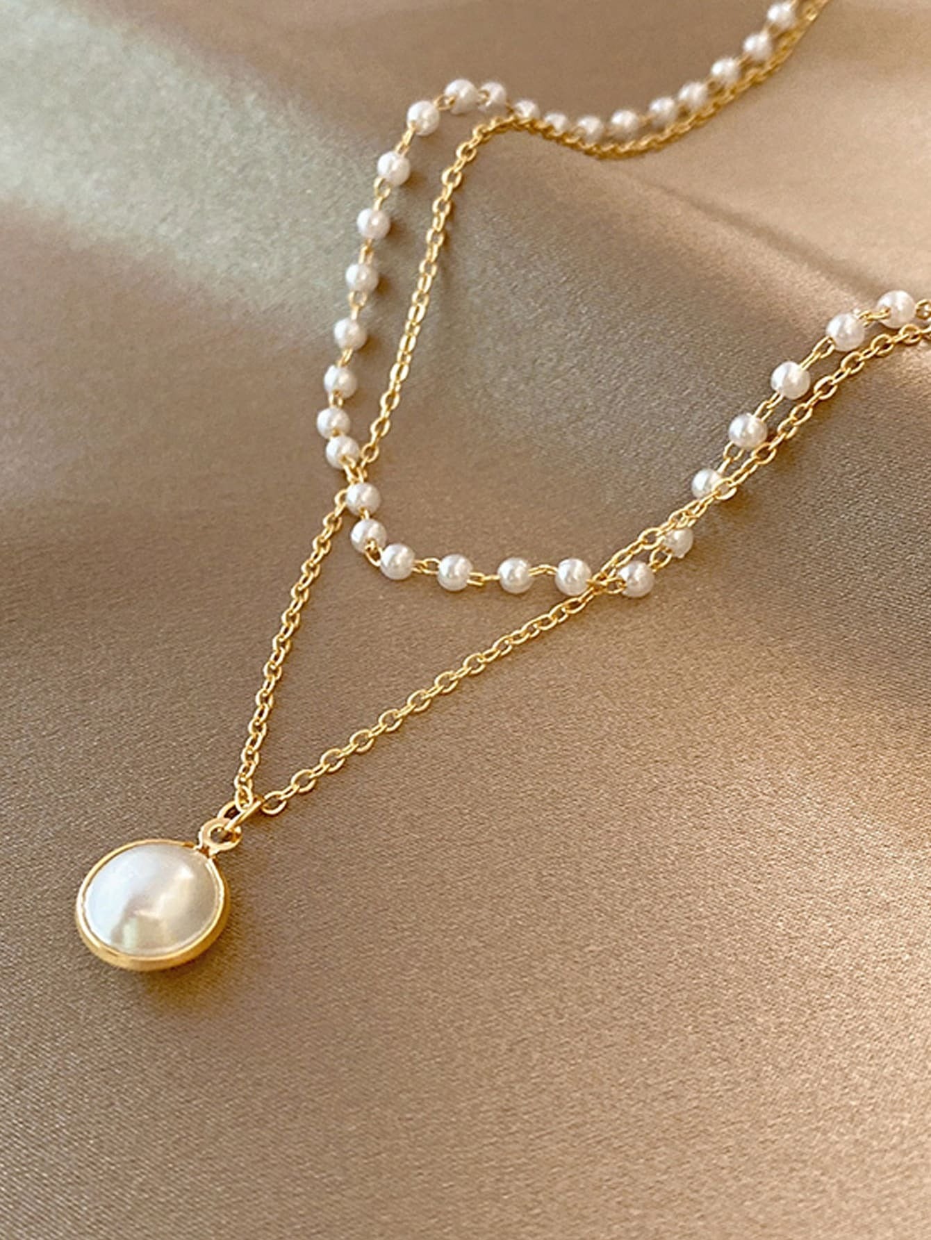 قلادة أنيقة وعصرية بطبقات متعددة مزينة باللؤلؤ الصناعي، تضيف لمسة فاخرة لأي إطلالة.