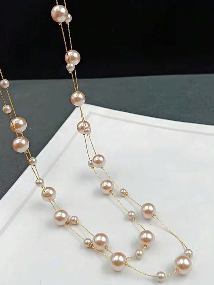 قلادة أنيقة للنساء بتصميم طويل، مزينة بلؤلؤ صناعي لإطلالة راقية وبسيطة، مناسبة لمختلف المناسبات في فصل الخريف والشتاء 🍂❄️.