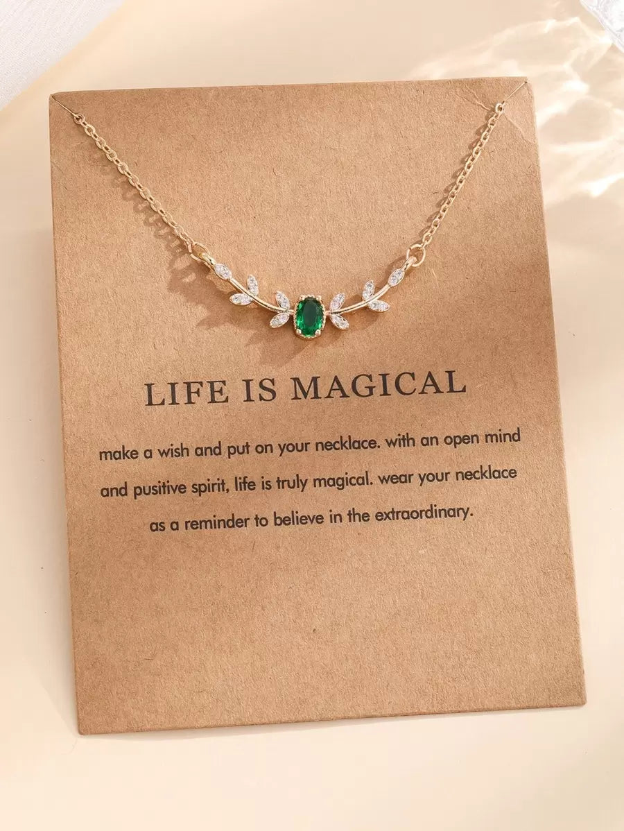 🍂 قلادة مكعب زركونيا بتعليقة ورق