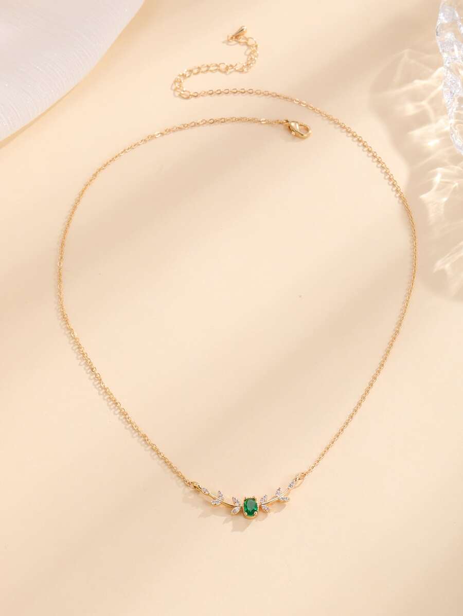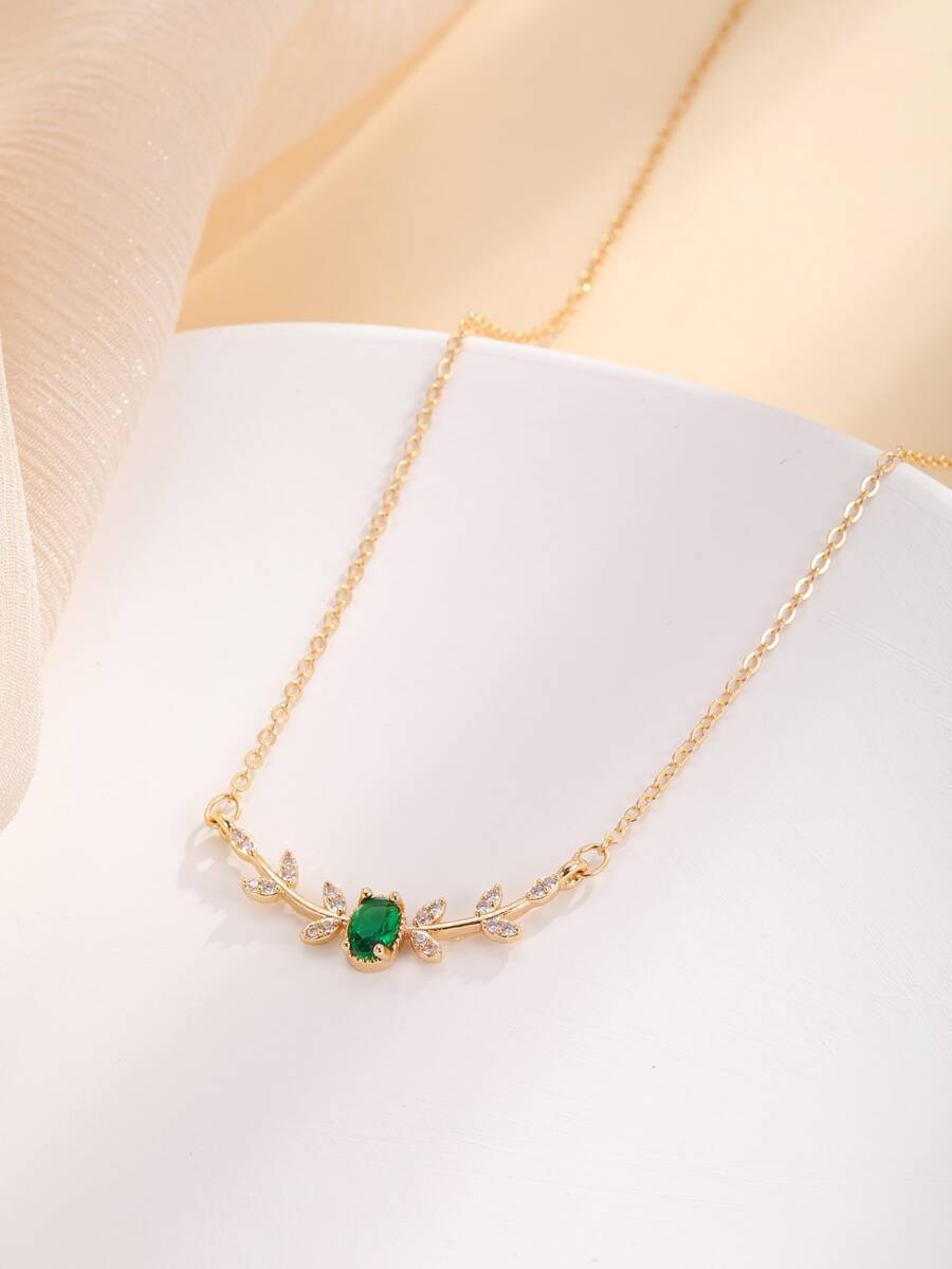 SHEIN قلادة مكعب زركونيا ذهبية بتعليقة ورق
