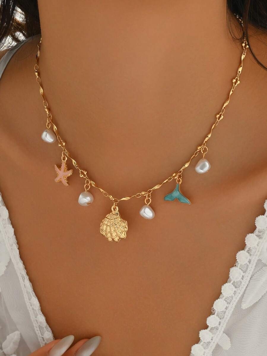 SHEIN قلادة ناعمة بأشكال نجم البحر و الصدف