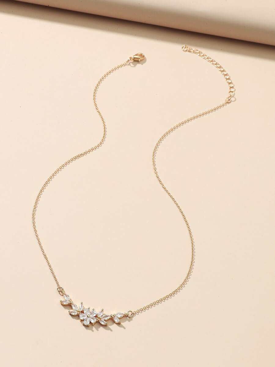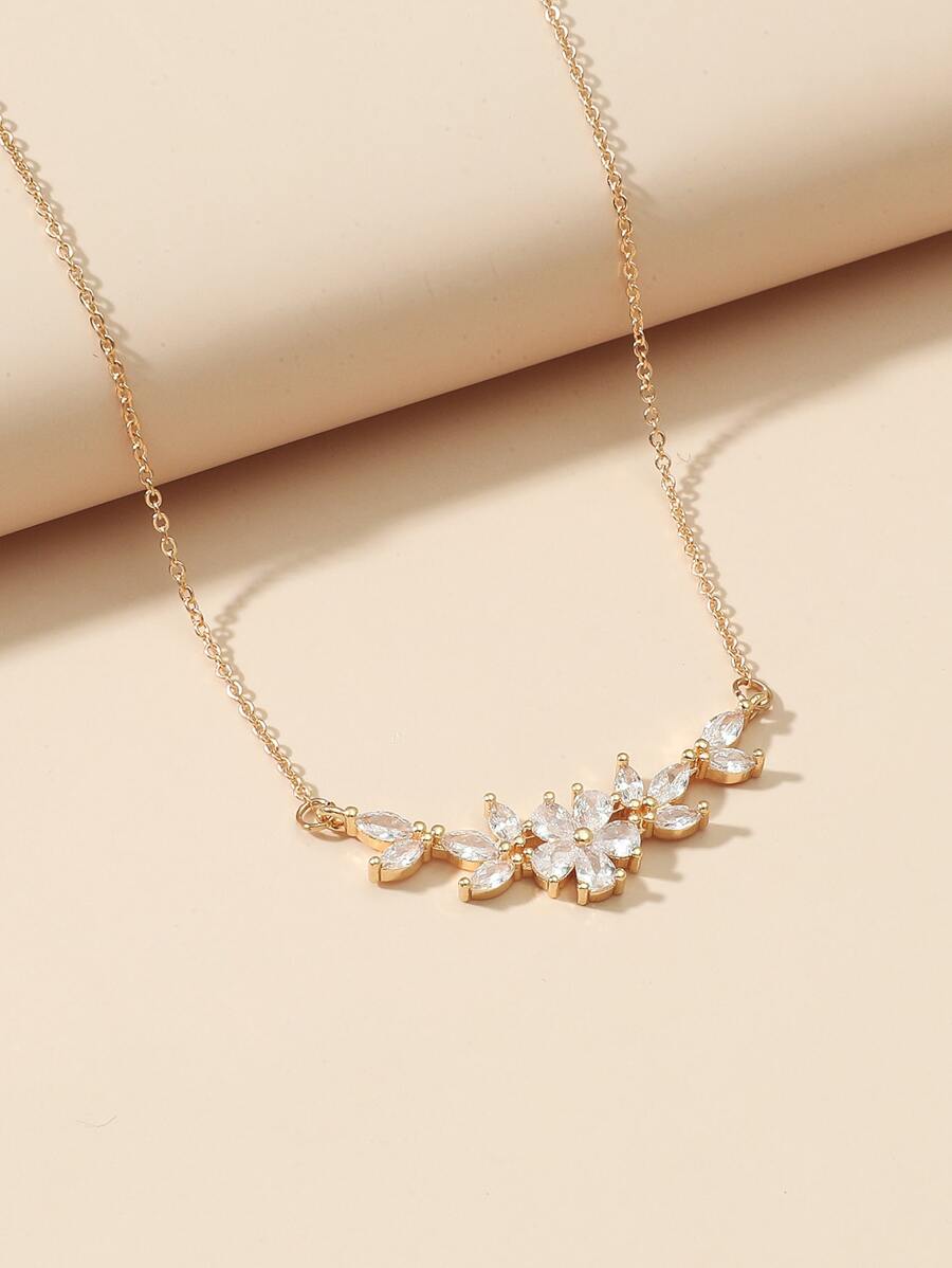 SHEIN قلادة نحاسية بزركونيا بتصميم زهرة وقلب وثعبان