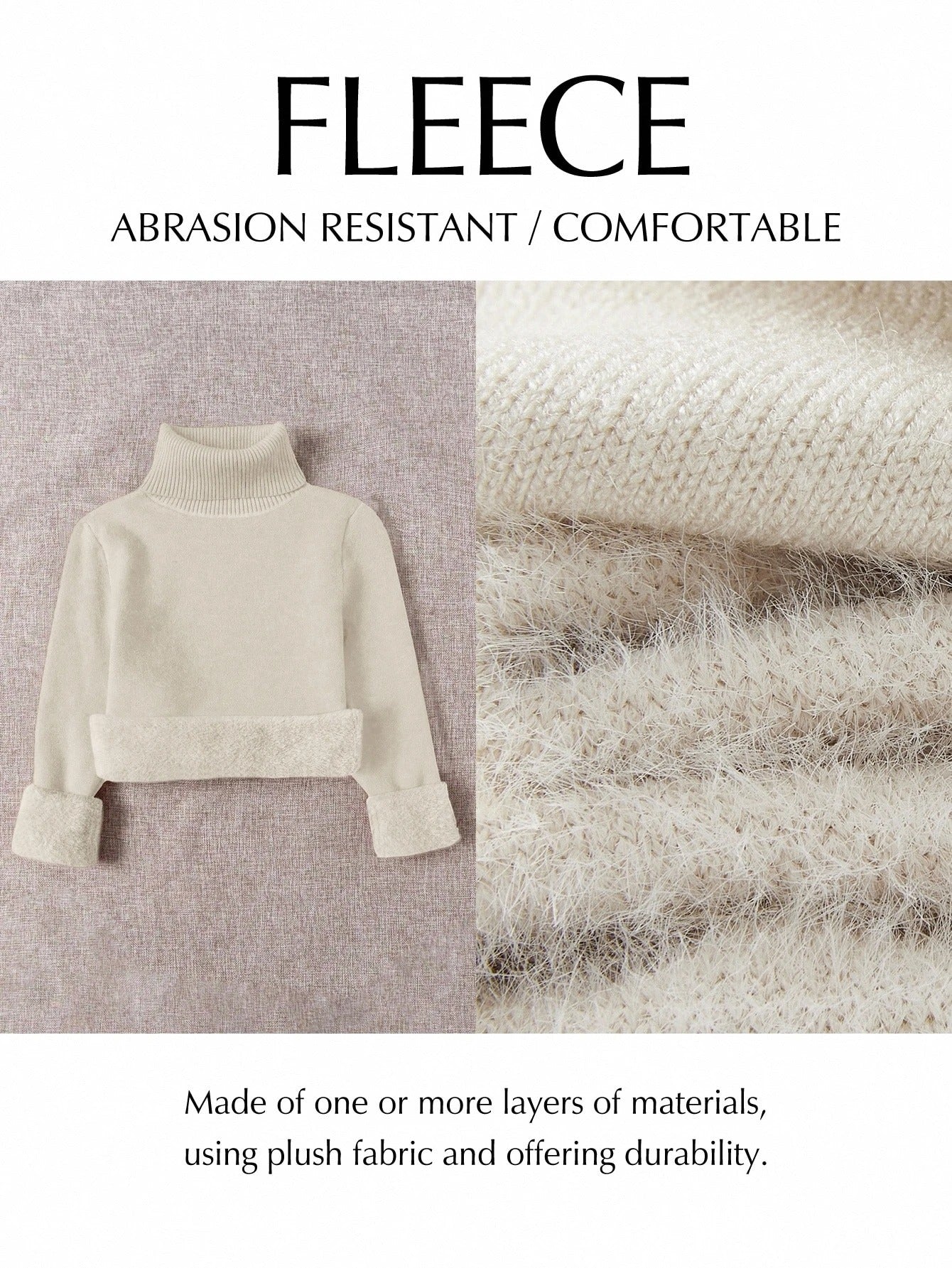 SHEIN كنزة حرارية شتوية ضيقة بياقة عالية بلون بيج