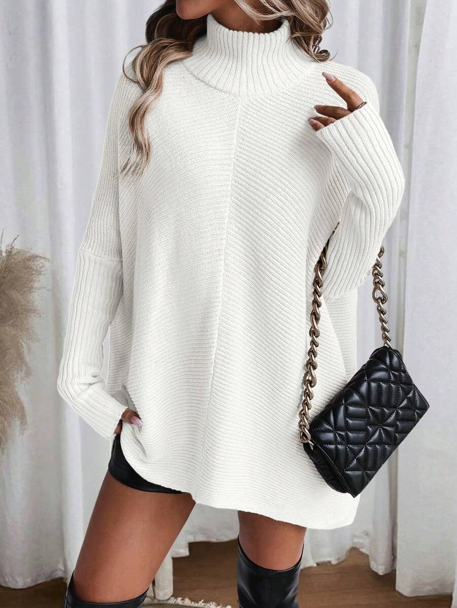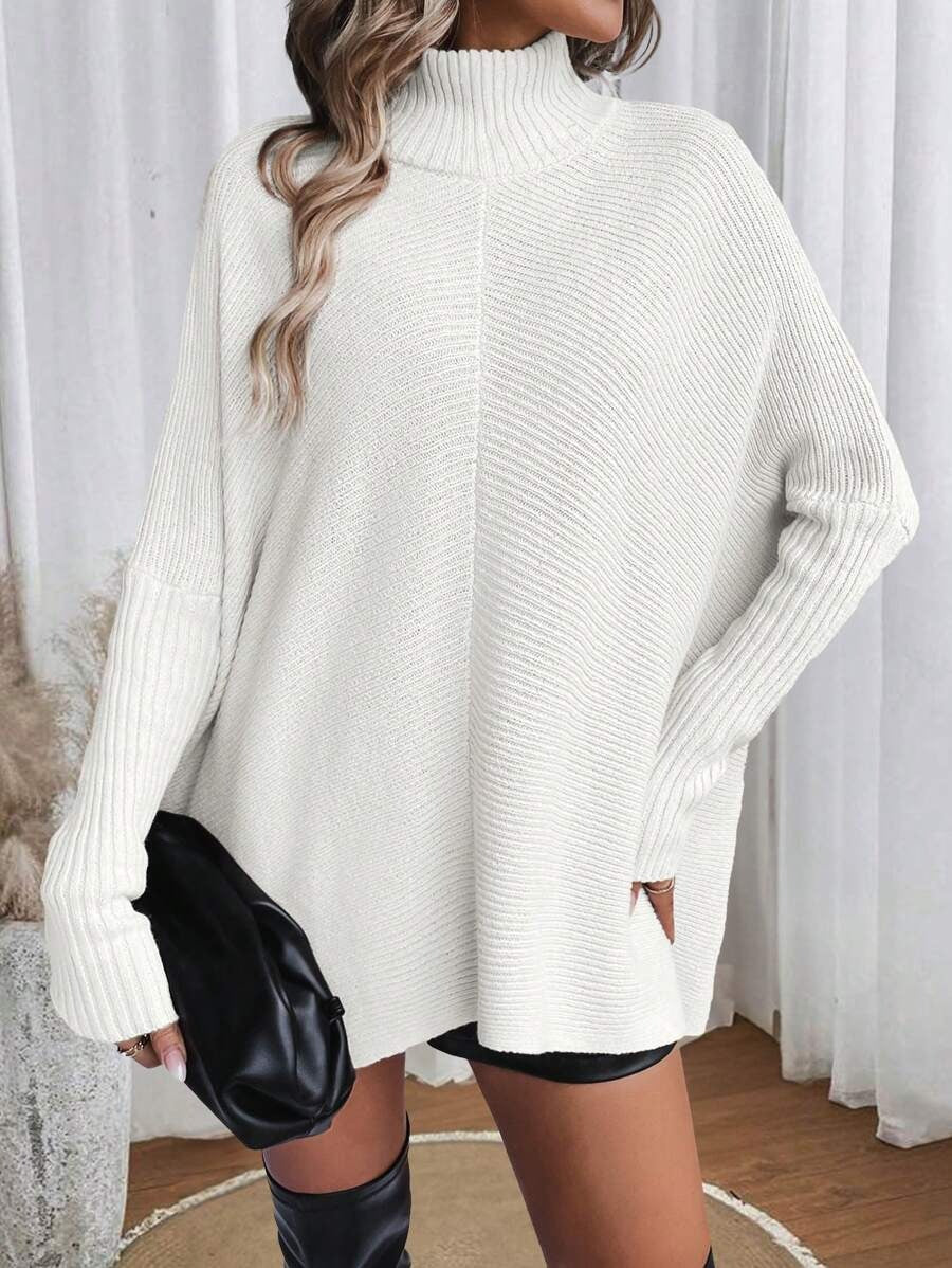 SHEIN كنزة صوفية بيضاء بياقة عالية وأكمام خفاش