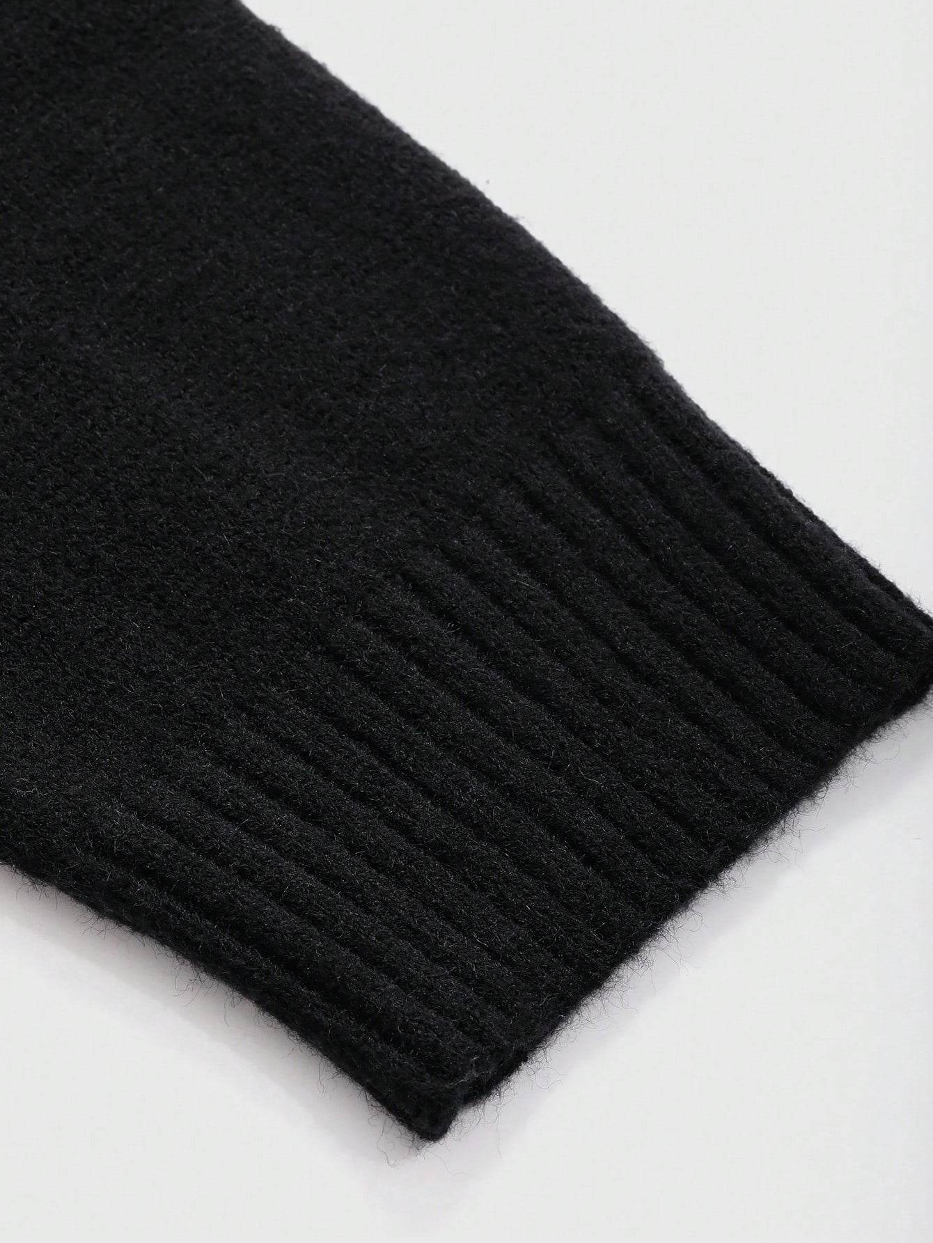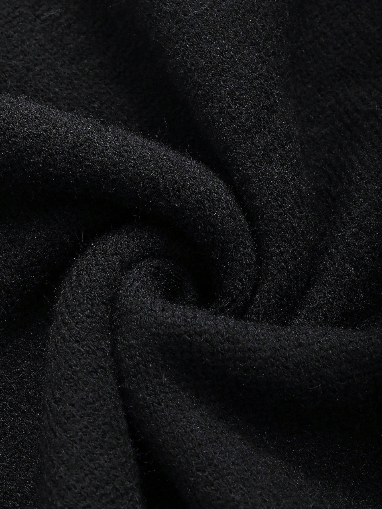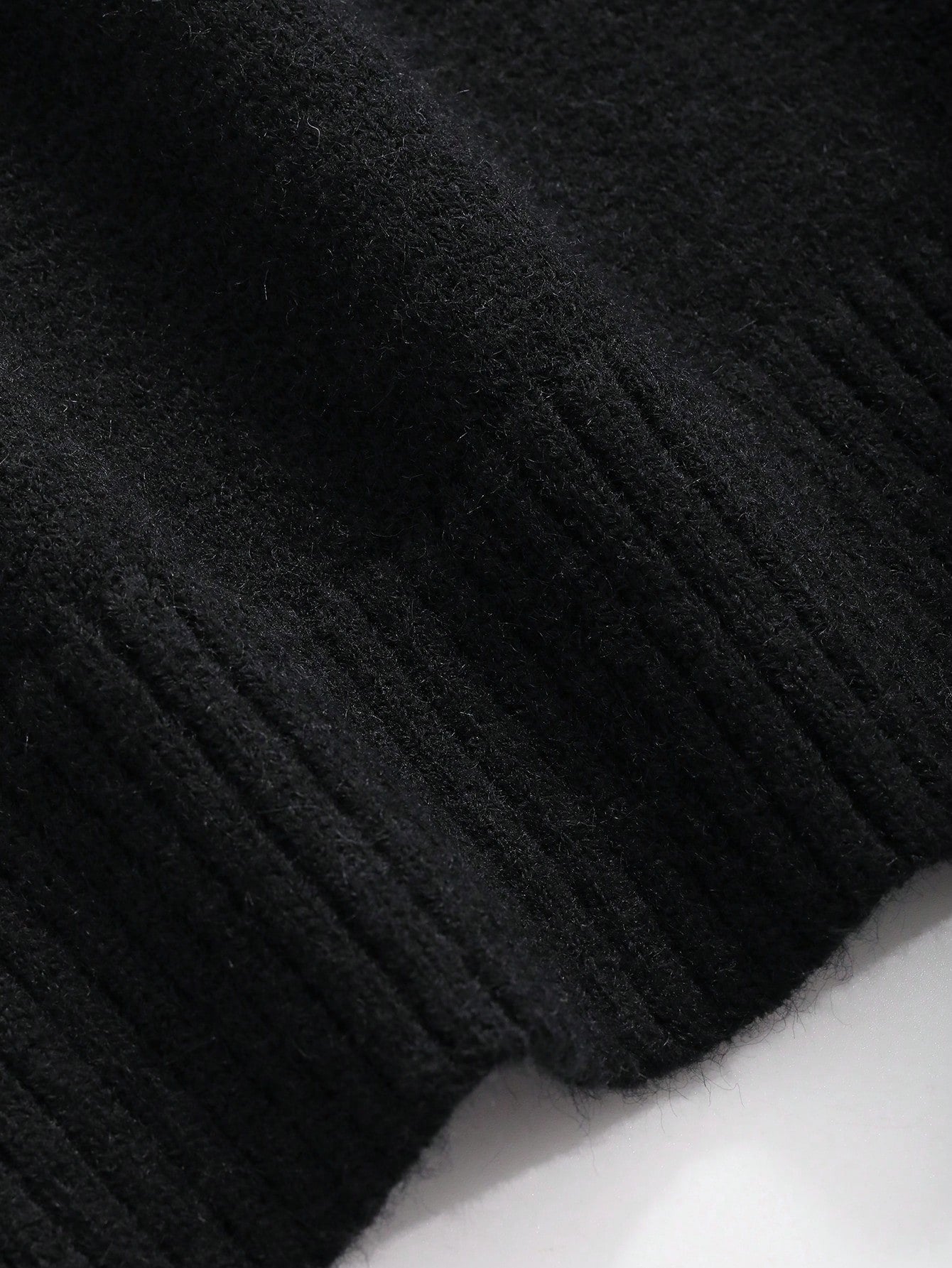 SHEIN كنزة صوفية سادة بياقة عالية وأكتاف منسدلة بلون أسود