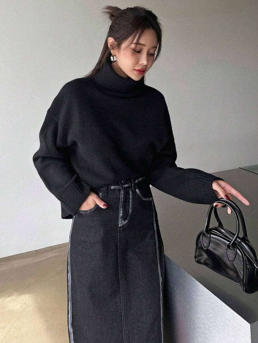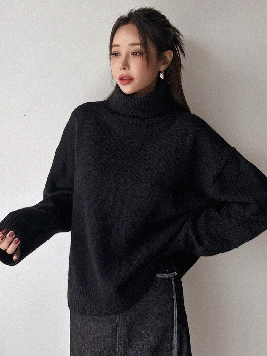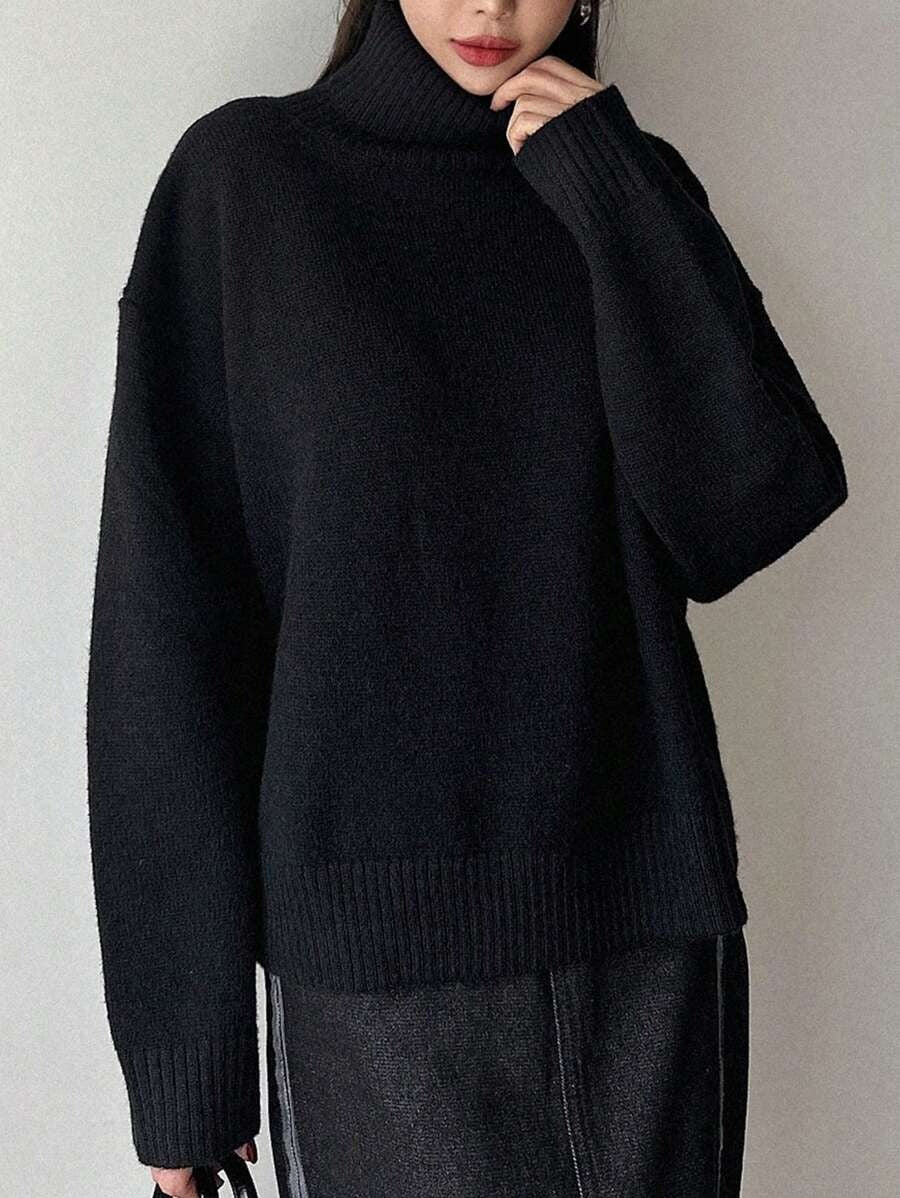 كنزة صوفية سادة بياقة عالية وأكتاف منسدلة – ستايل دافي ومرتب ❄️