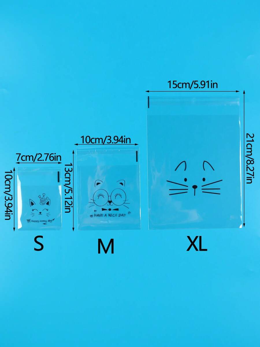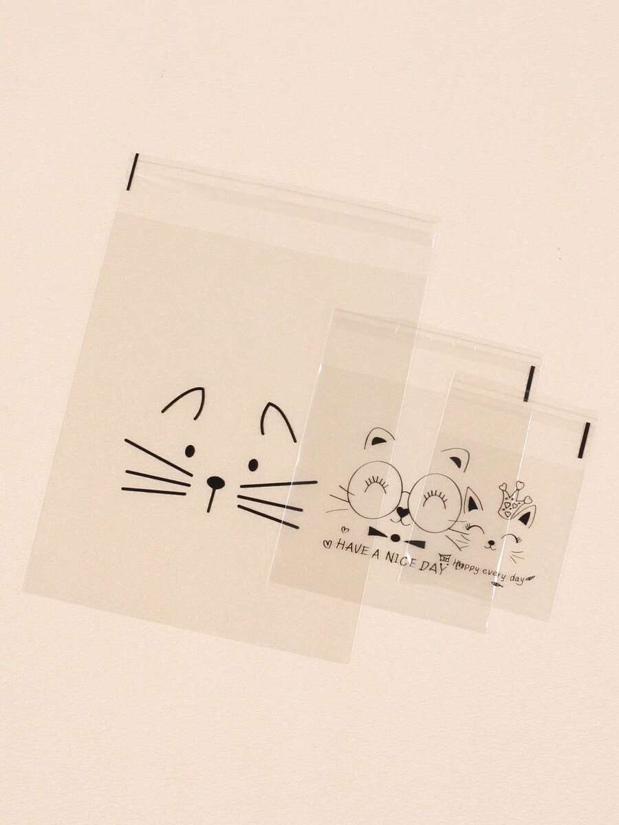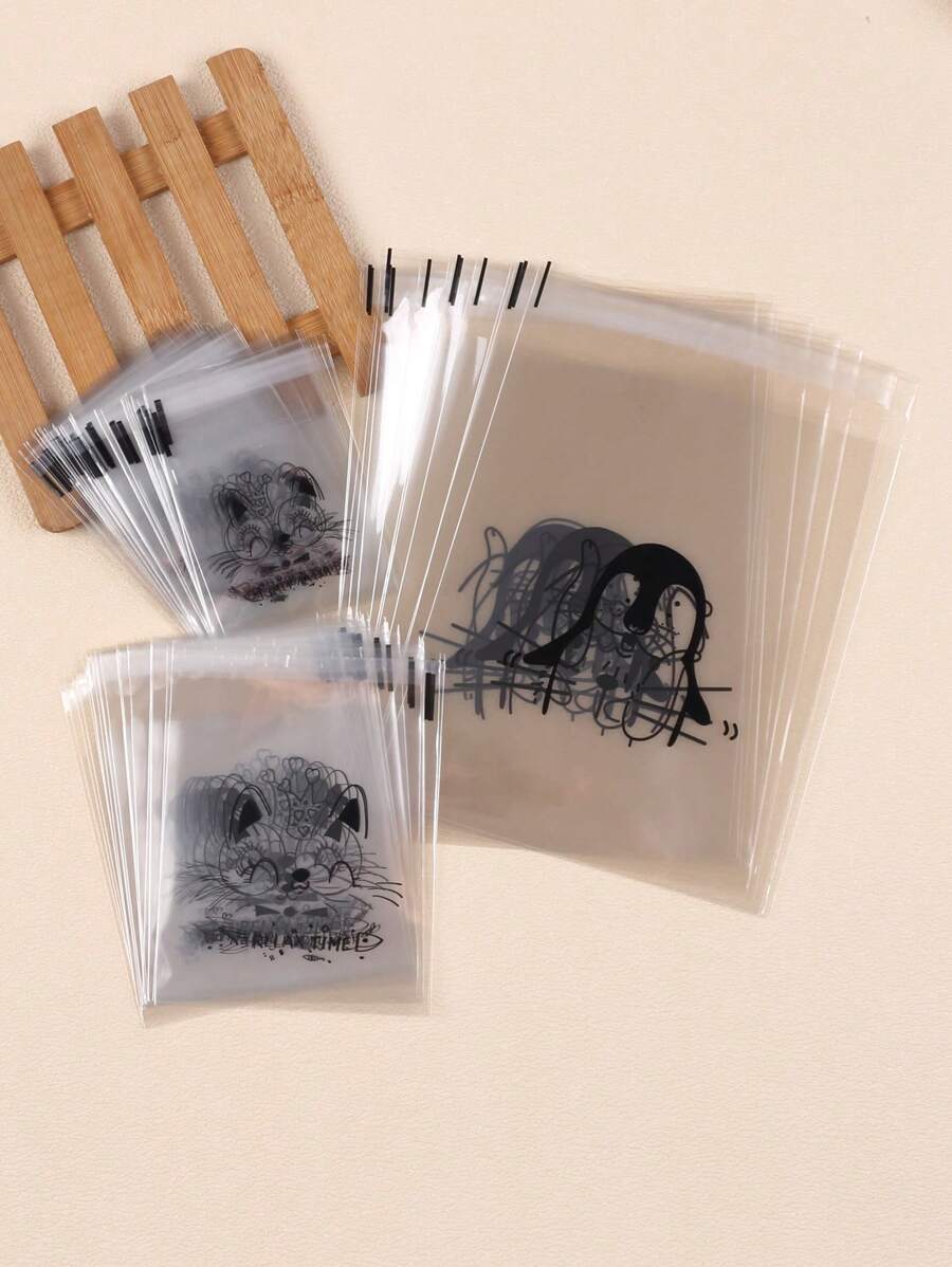 SHEIN كيس خبز شفاف 100 قطعة ذاتي اللصق بتصميمات كرتونية