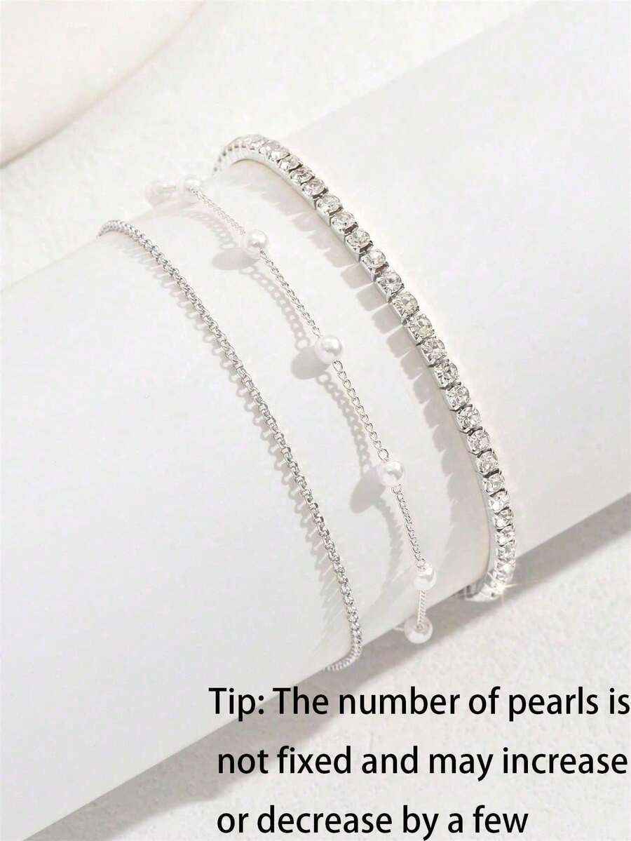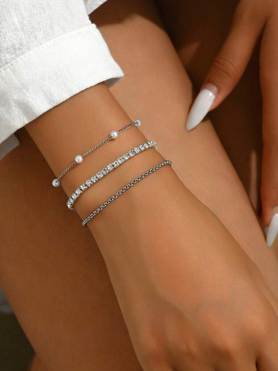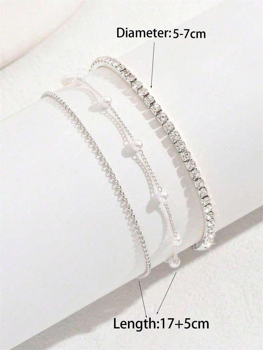 SHEIN مجموعة أساور 3 قطع فضية مرصعة بالكريستال