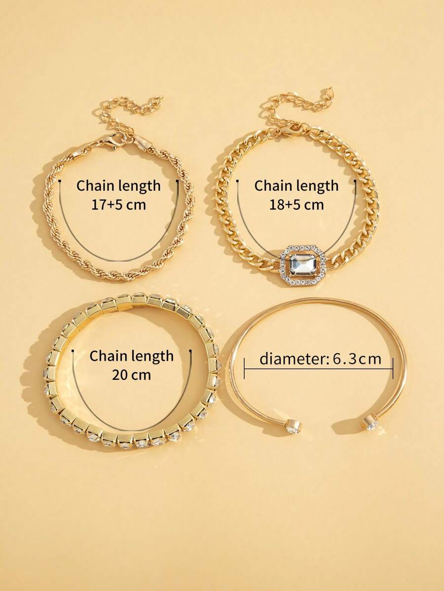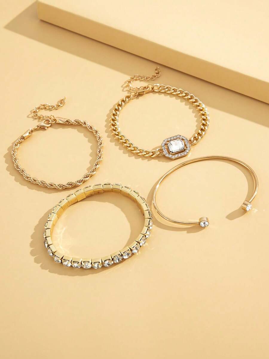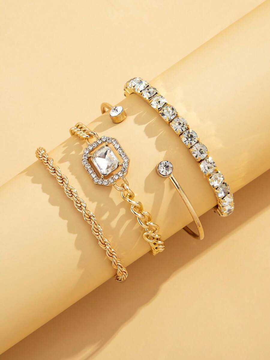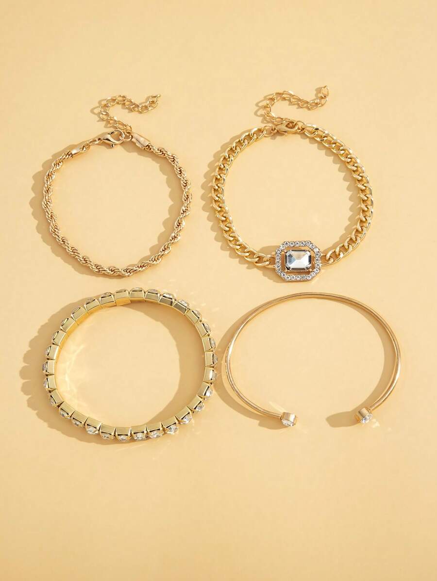 SHEIN مجموعة أساور 4 قطع ذهبية مزخرفة بالأحجار الكريمة