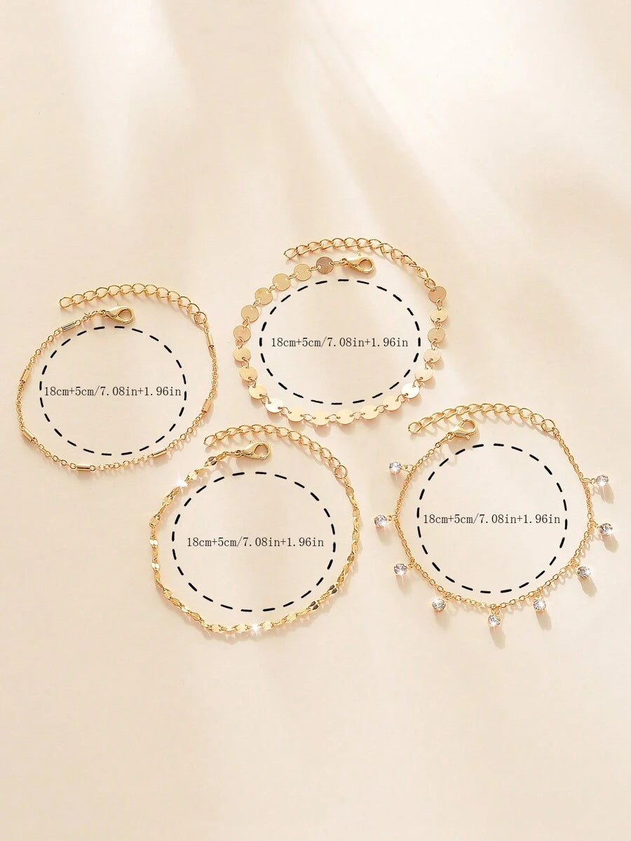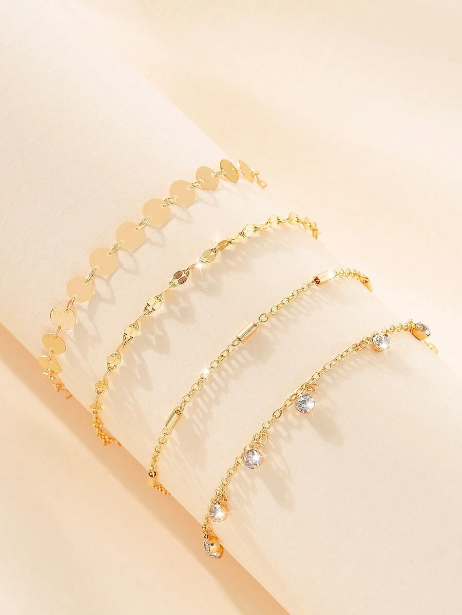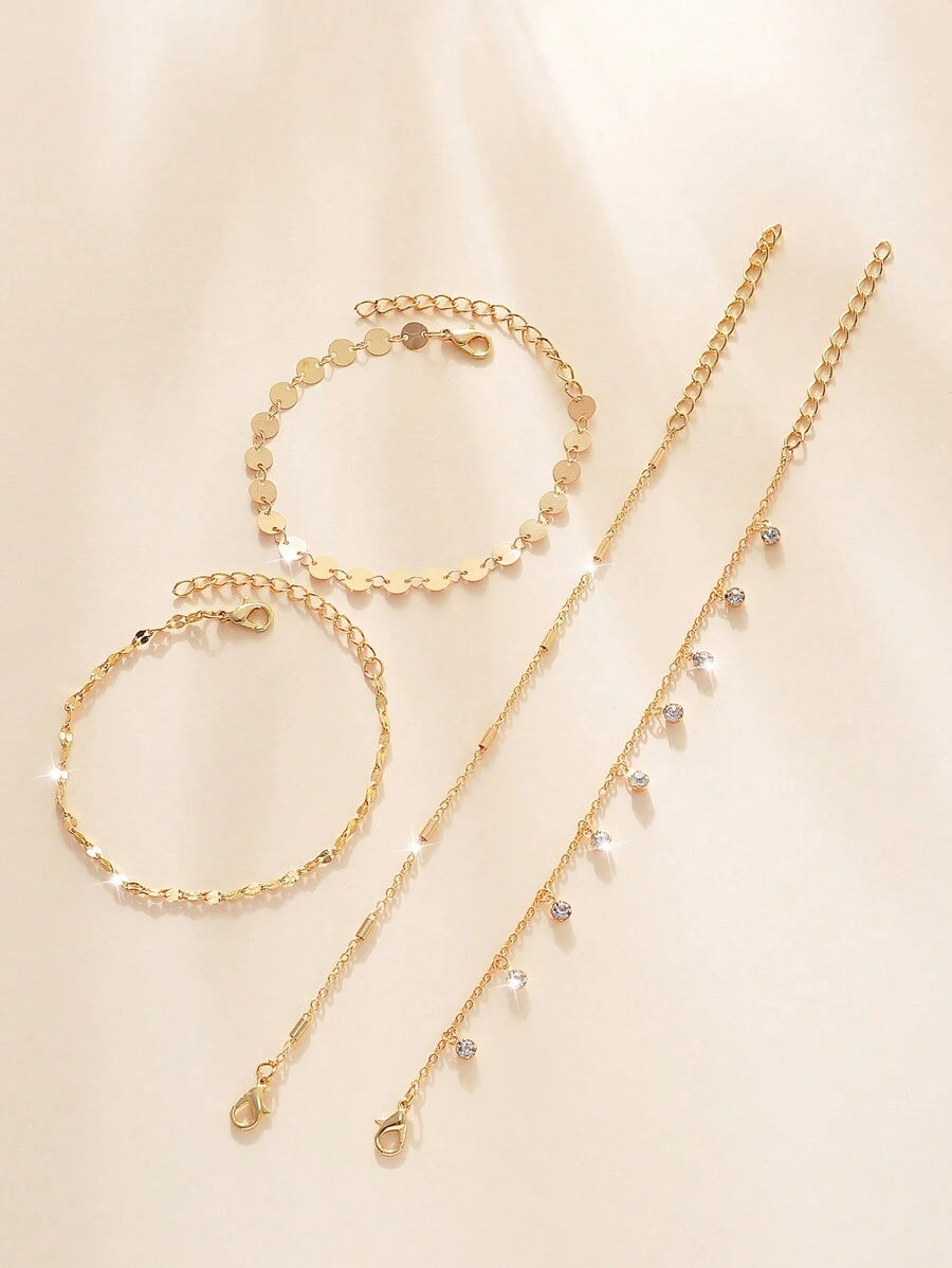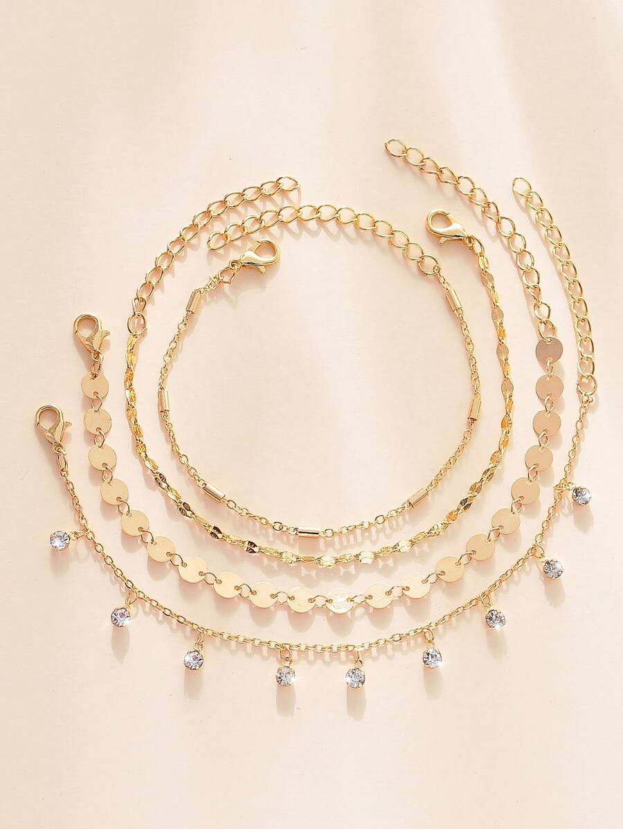 SHEIN مجموعة أساور 4 قطع ذهبية مزينة بالكريستال