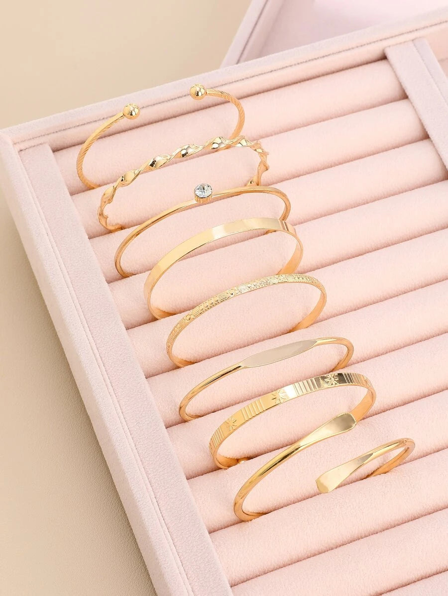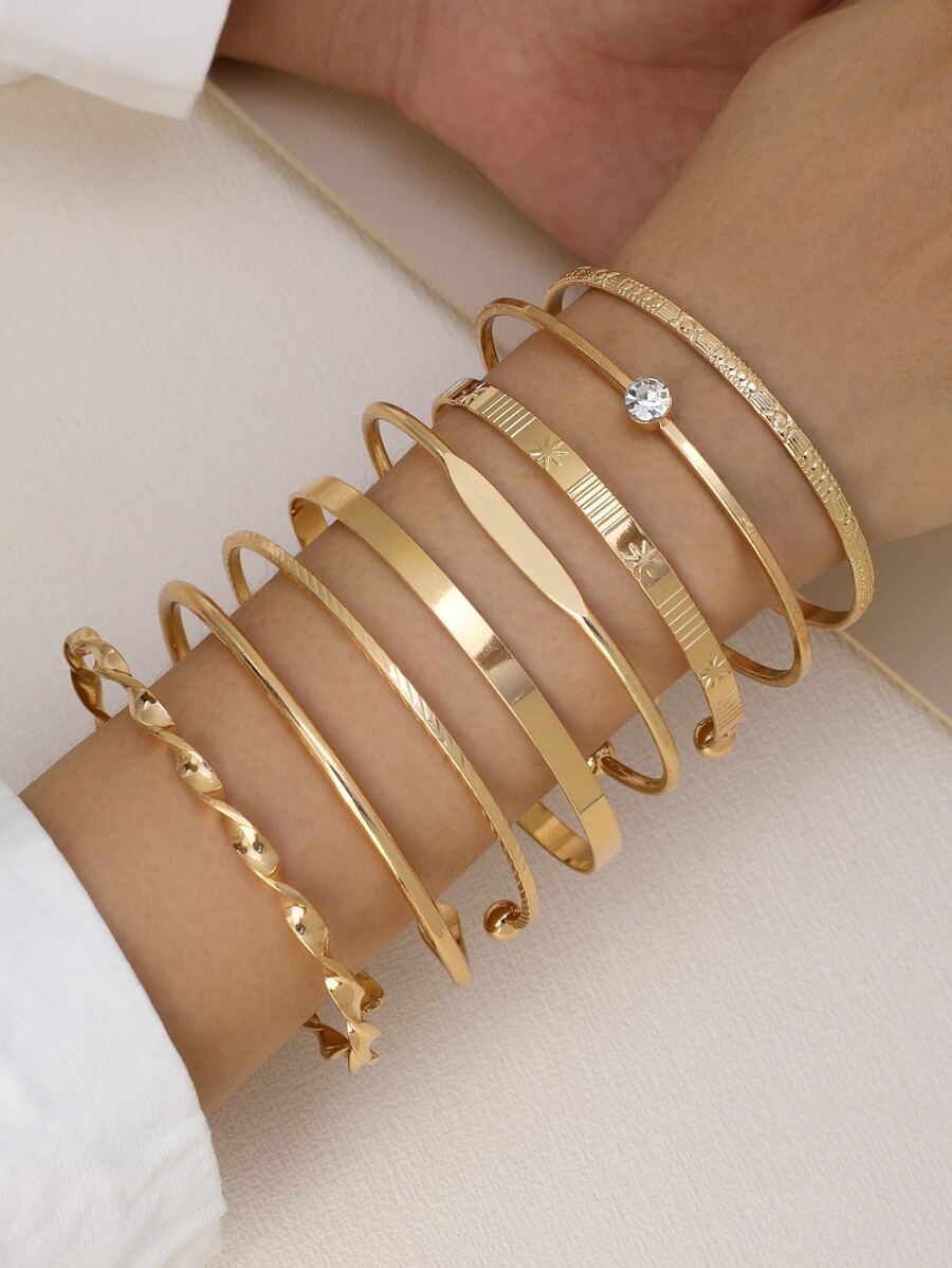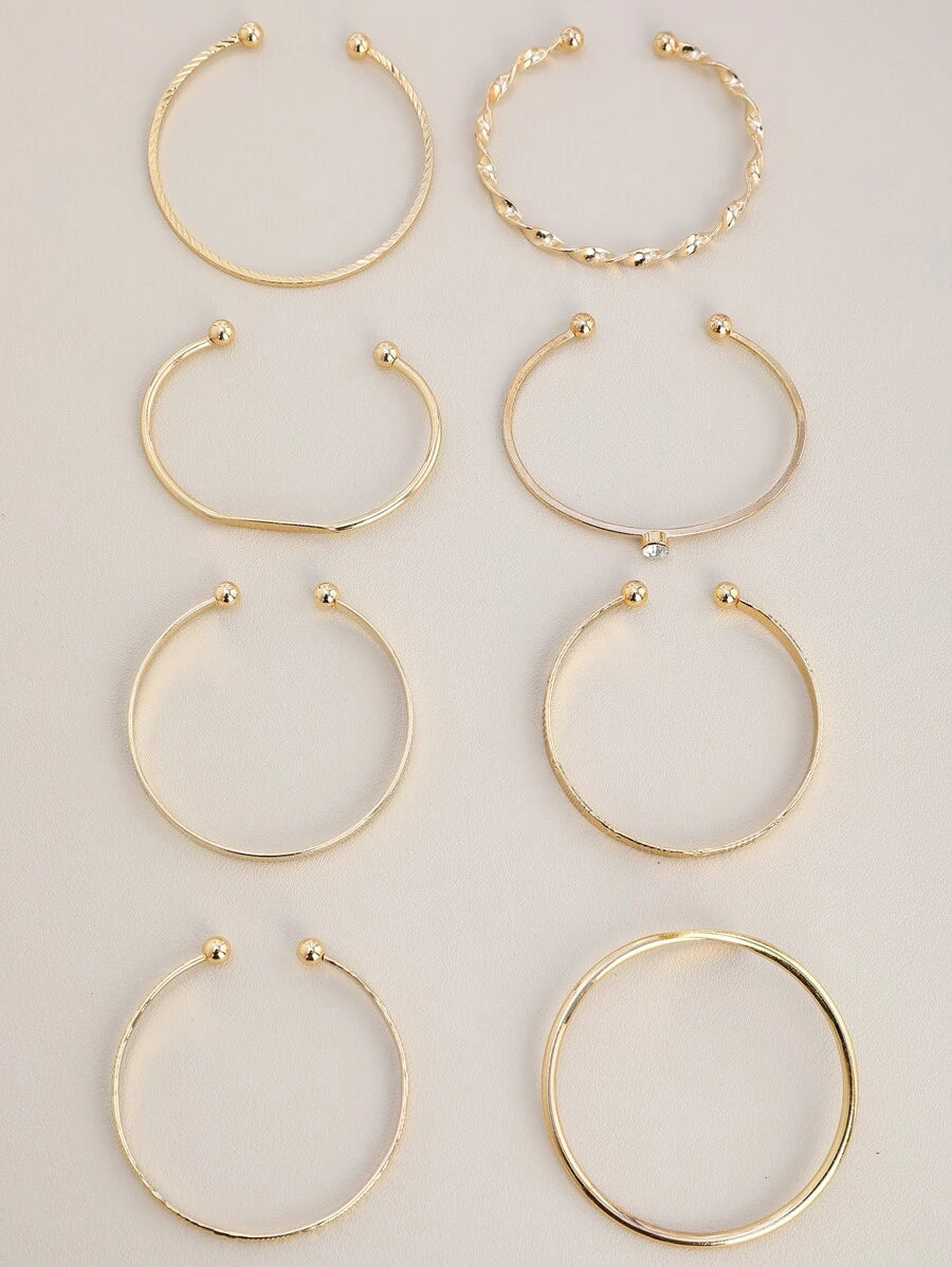 SHEIN مجموعة أساور 8 قطع ذهبية مفتوحة مزينة بحجر الراين