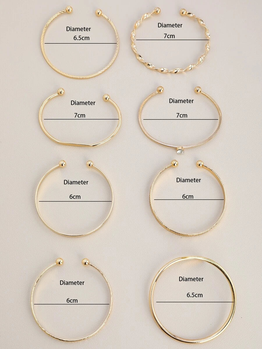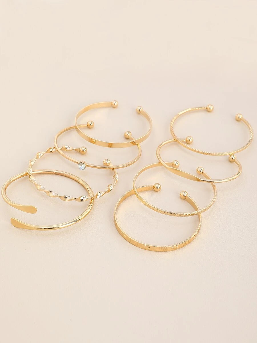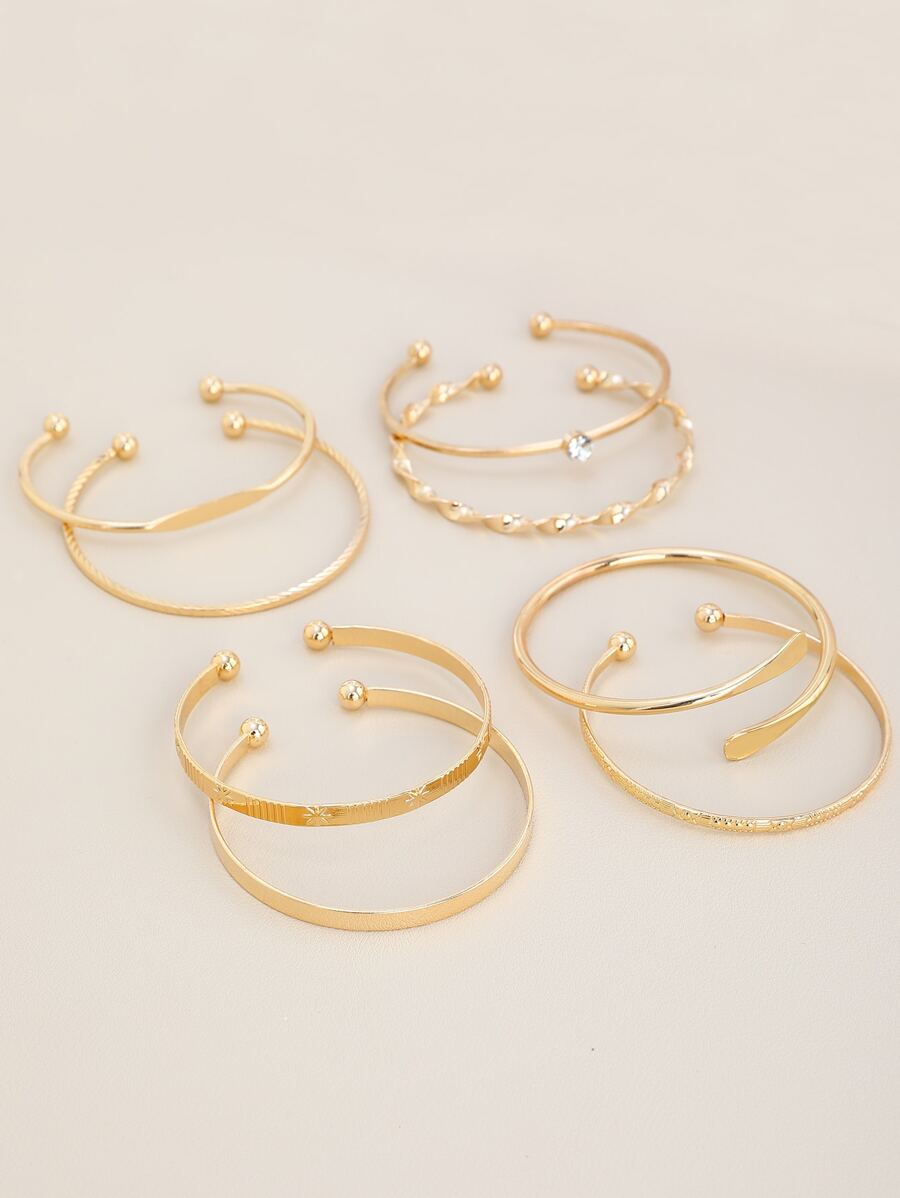 SHEIN مجموعة أساور 8 قطع ذهبية مفتوحة مزينة بحجر الراين