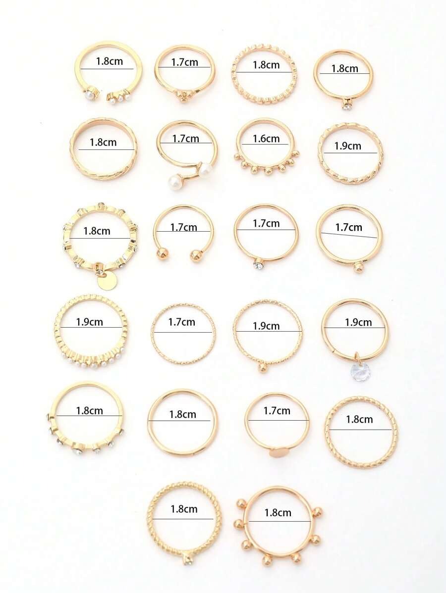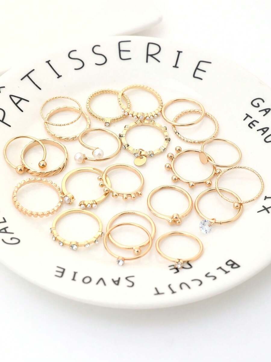SHEIN مجموعة خواتم 22 قطعة مزينة باللؤلؤ والزركون
