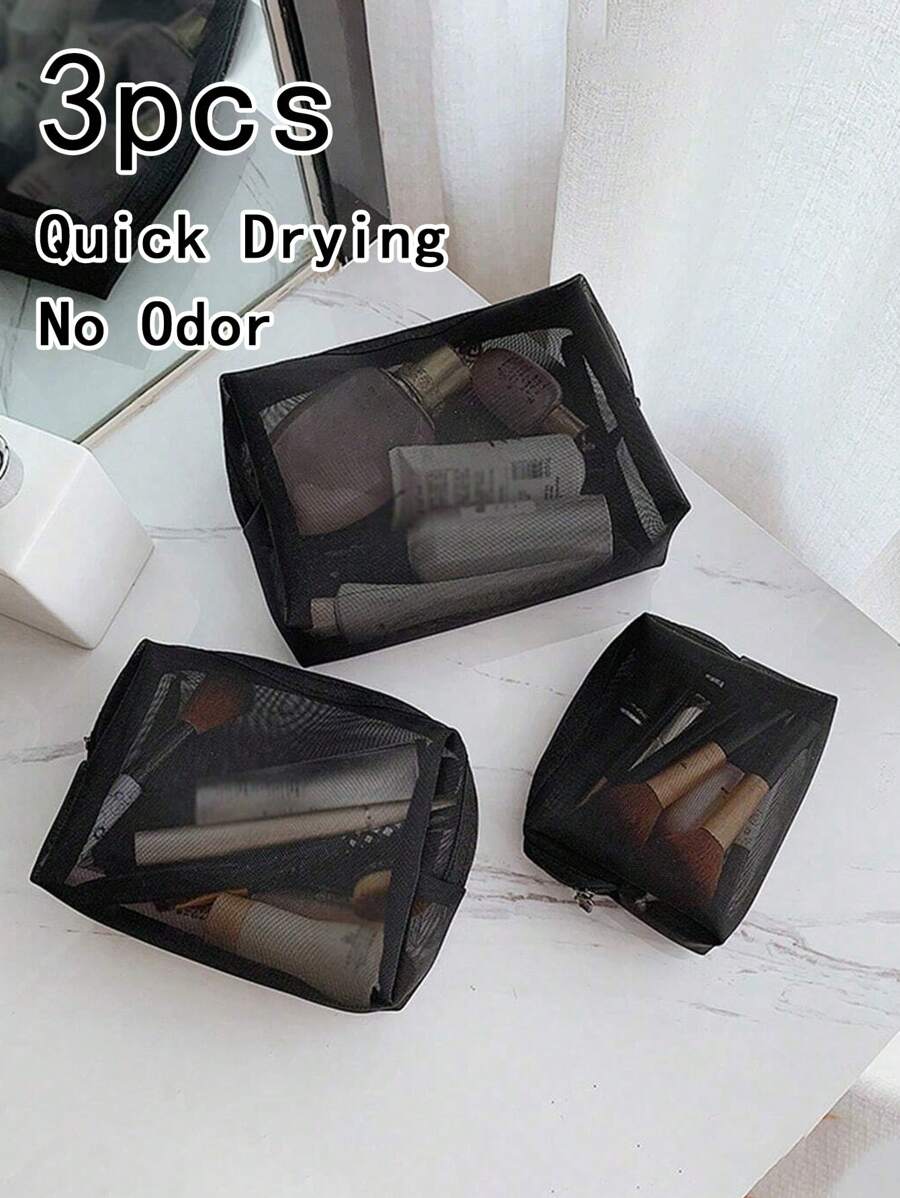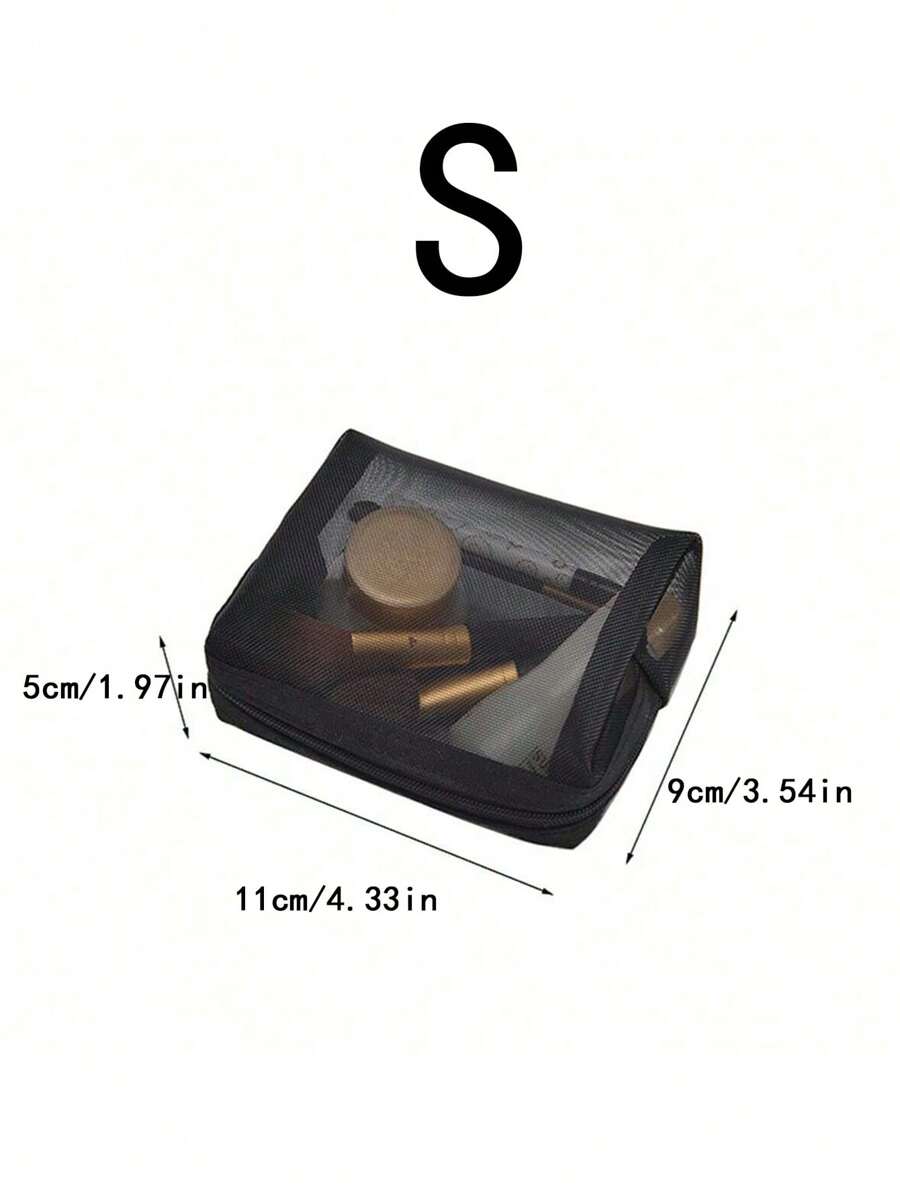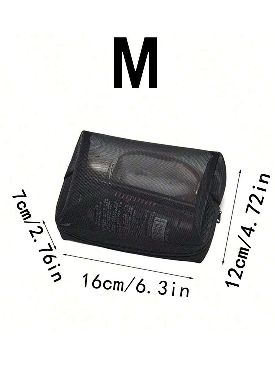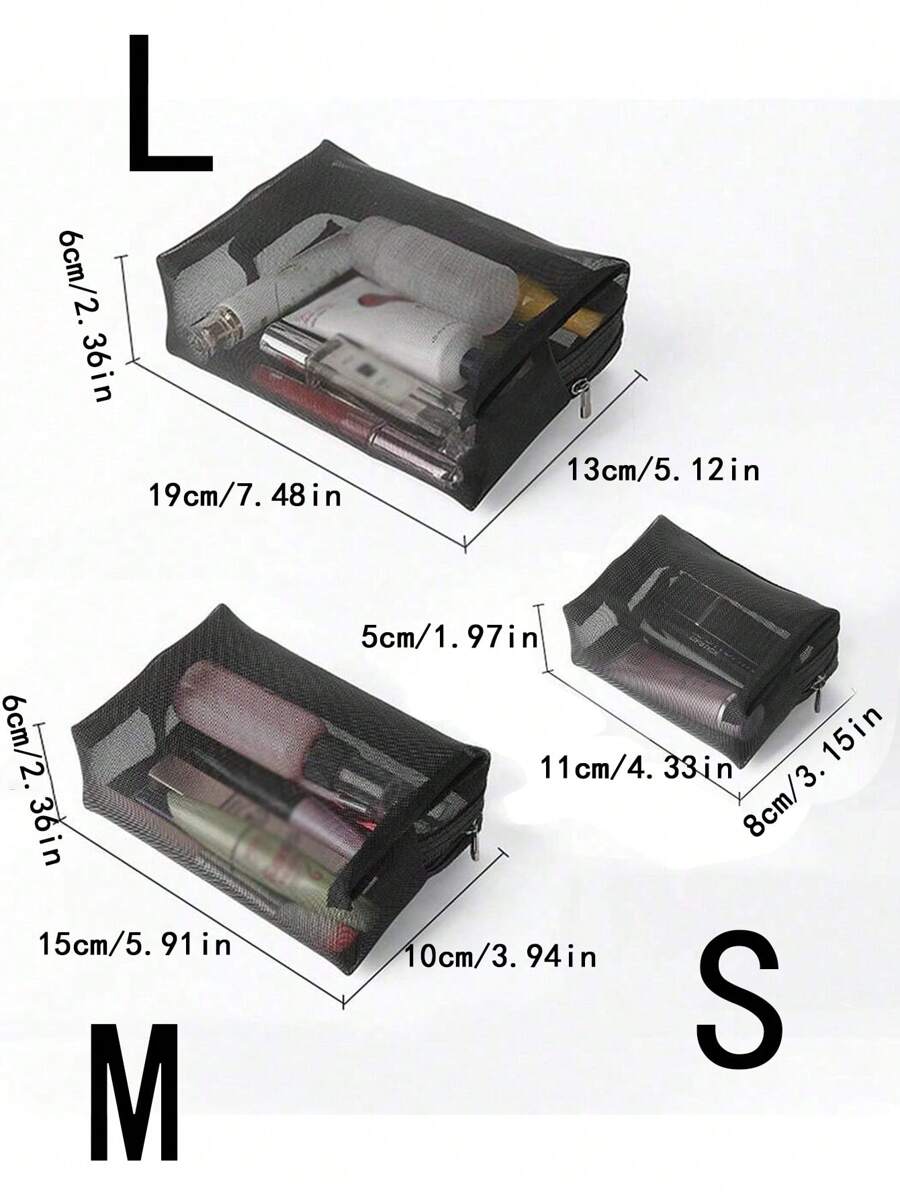 SHEIN مجموعة حقائب مكياج شفافة من الشبك بسحاب