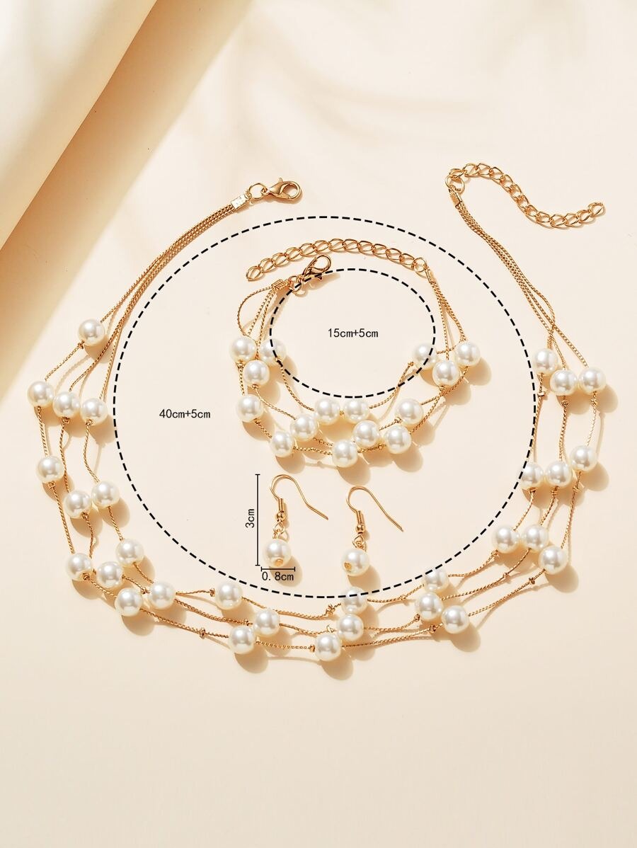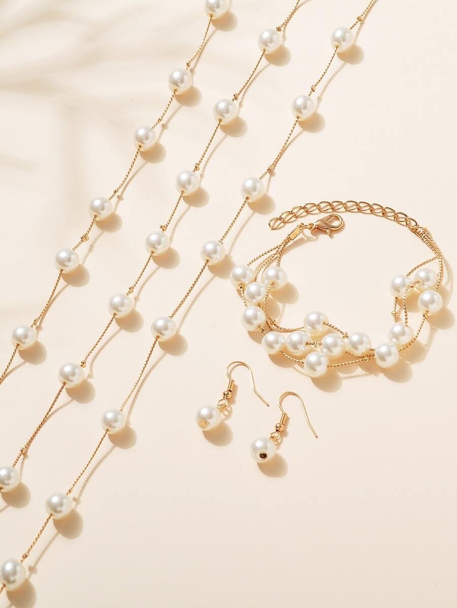 SHEIN طقم مجوهرات 4 قطع مزينة بلؤلؤ اصطناعي