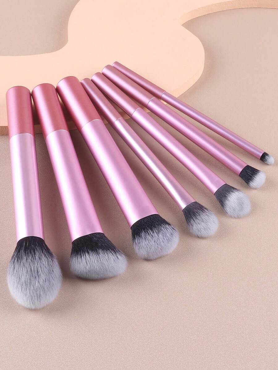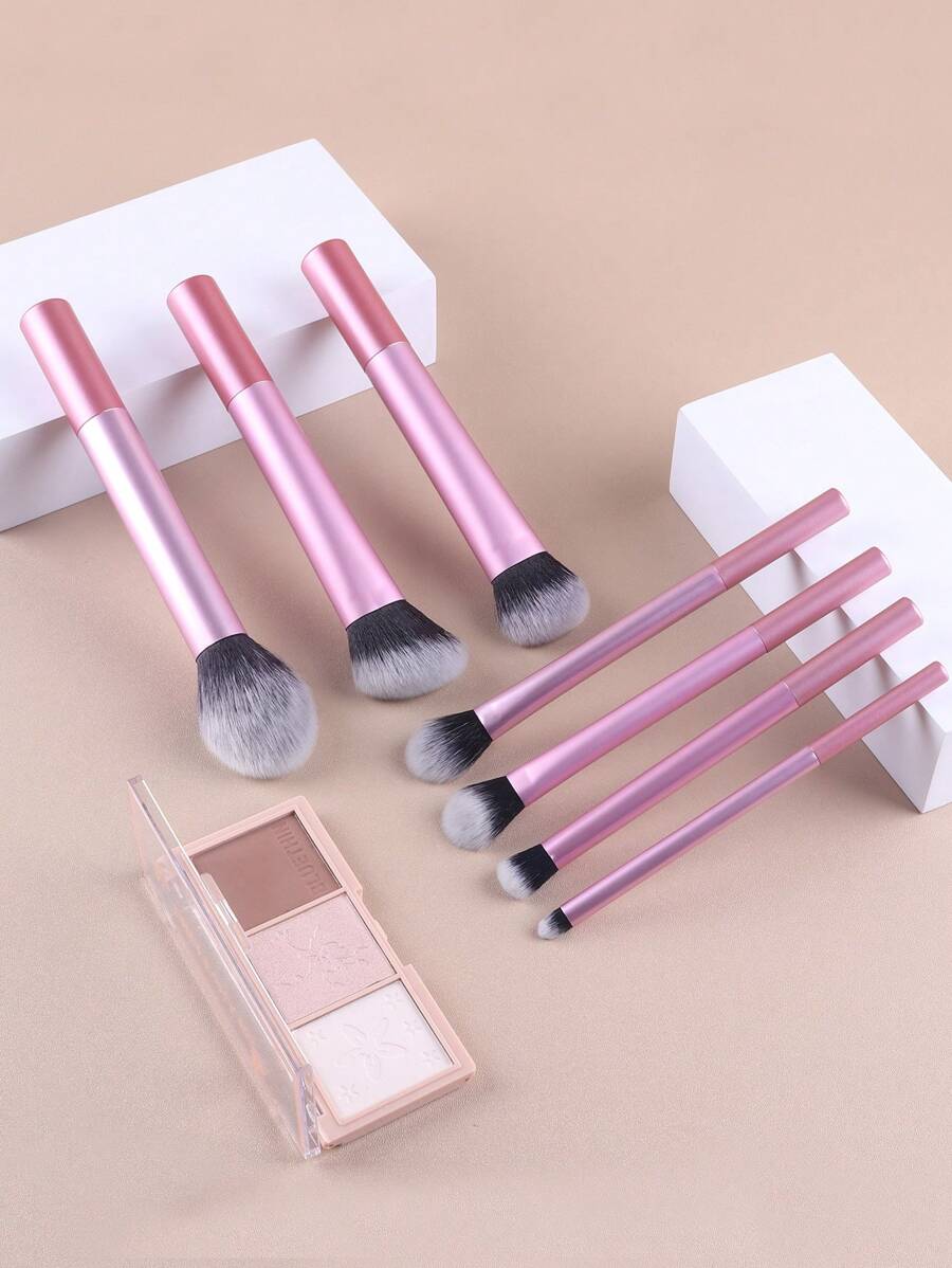 SHEIN مجموعة فرش مكياج باللون الوردي تحتوي على 7 قطع