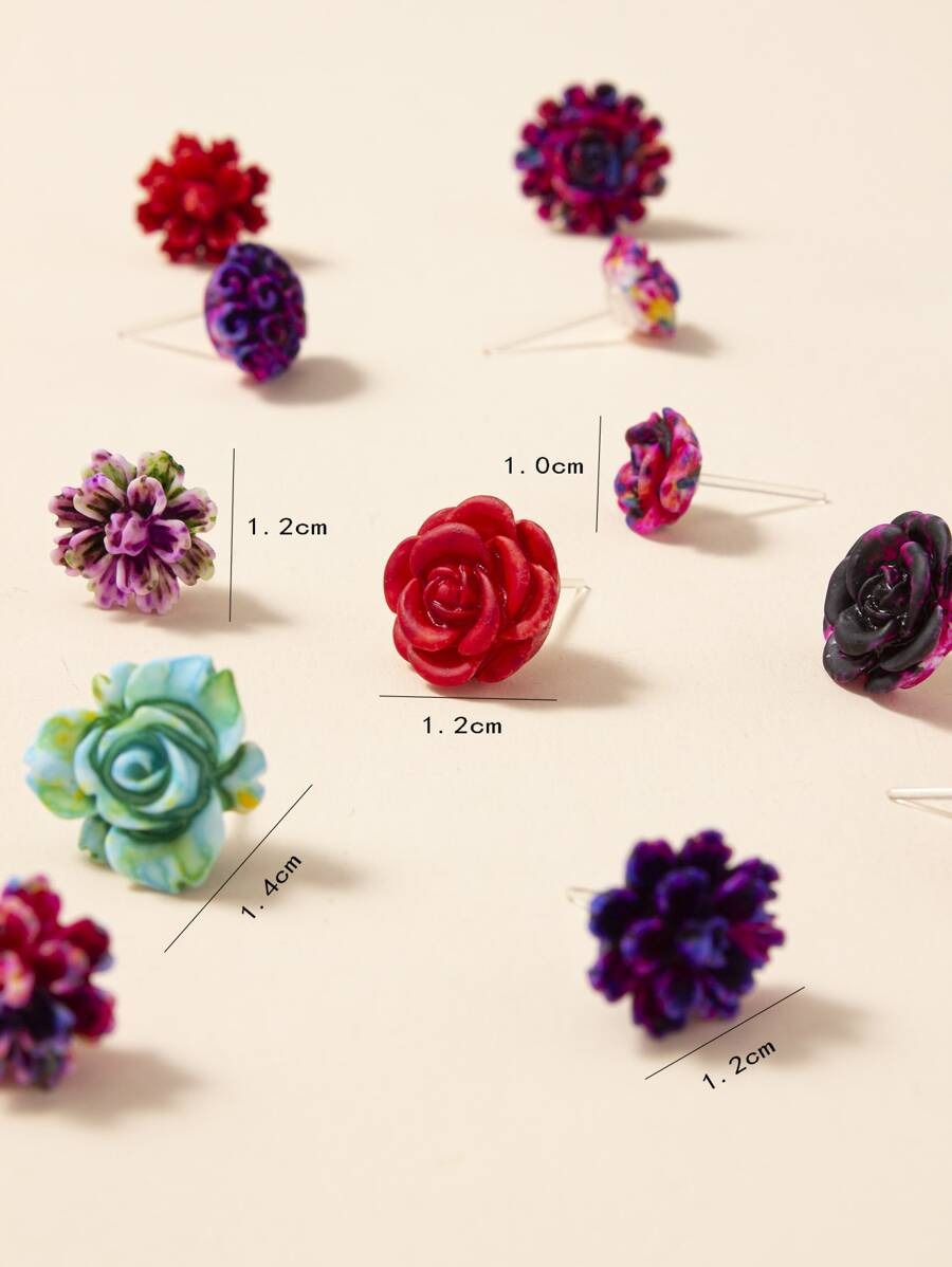 SHEIN مجموعة متنوعة من 36 زوج أقراط بأشكال أزهار