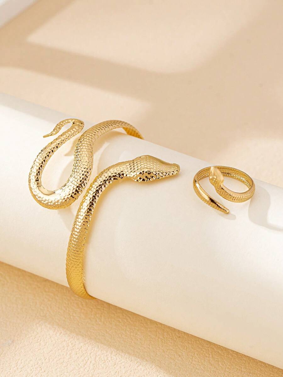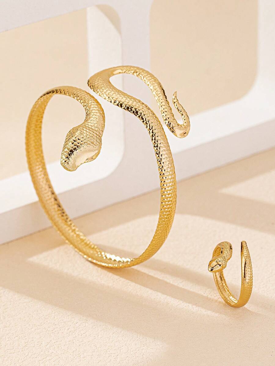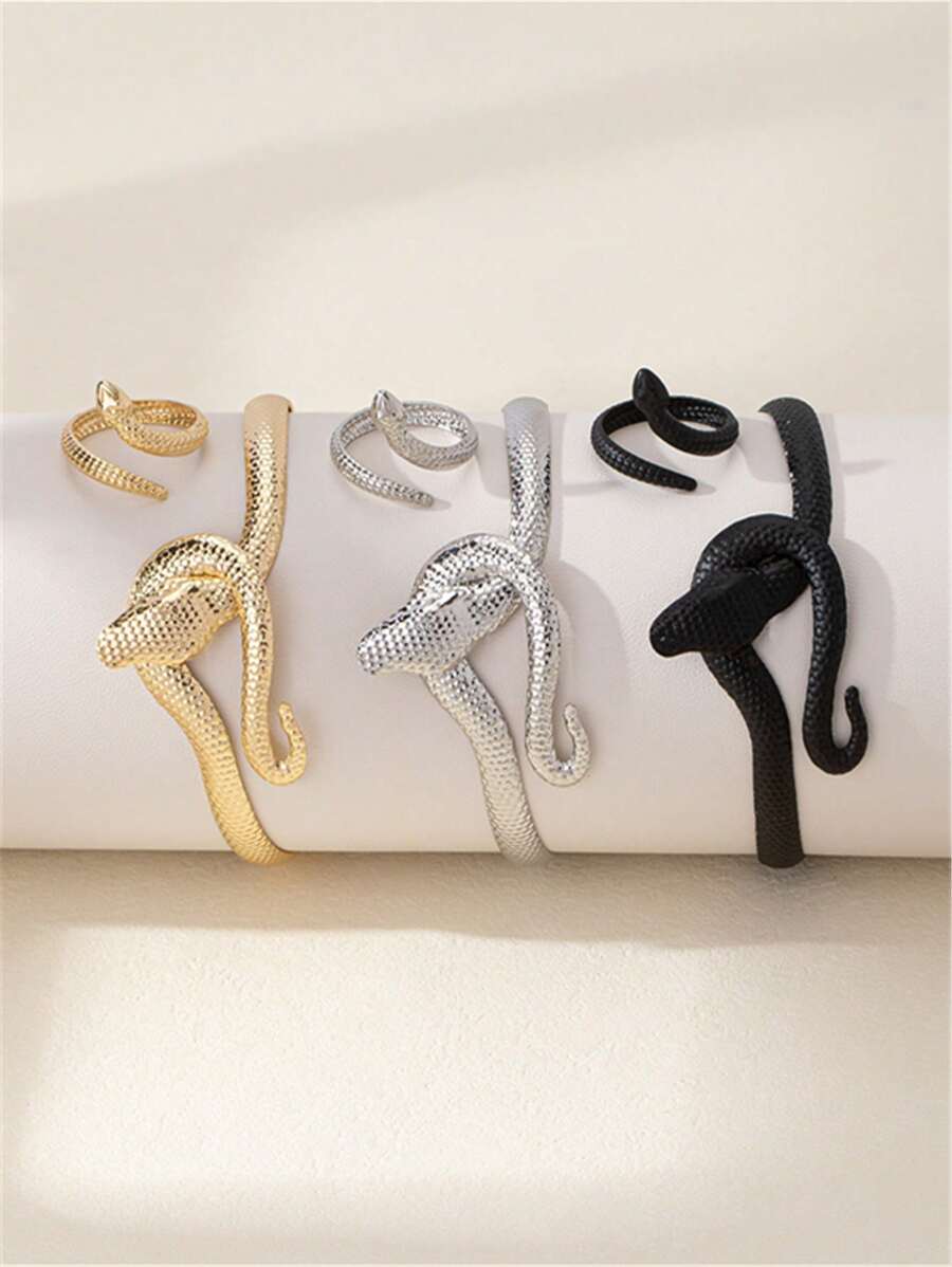 SHEIN مجموعة مجوهرات أساور وخواتم ثعبان