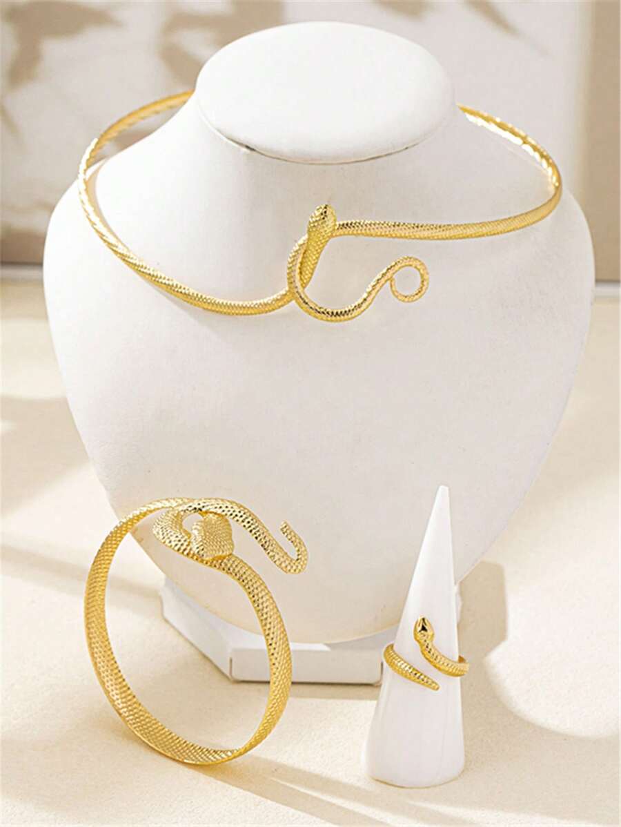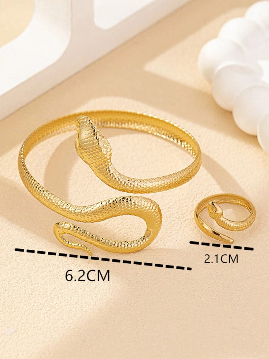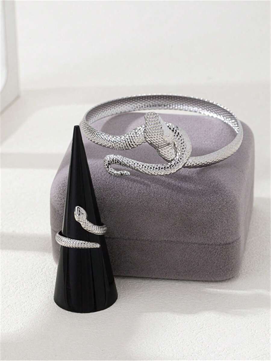 SHEIN مجموعة مجوهرات أساور وخواتم ثعبان