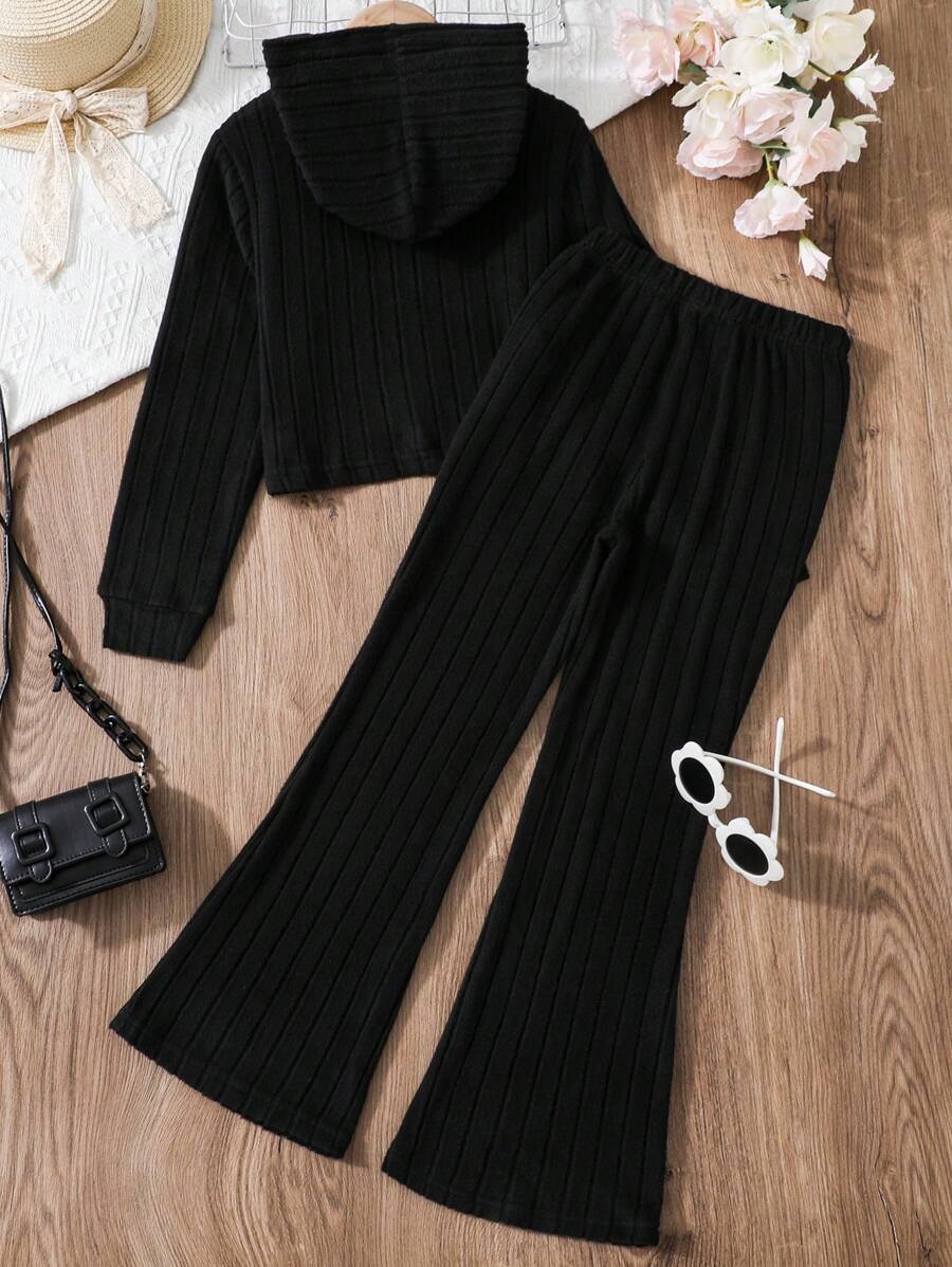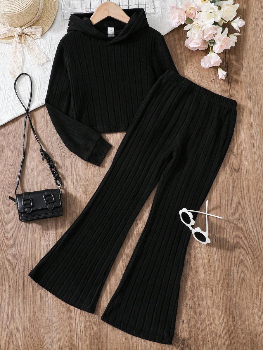 SHEIN مجموعة هودي ربيعية للفتيات بالمرحلة الانتقالية بلون صلب وبنطلون واسع بالأرجل