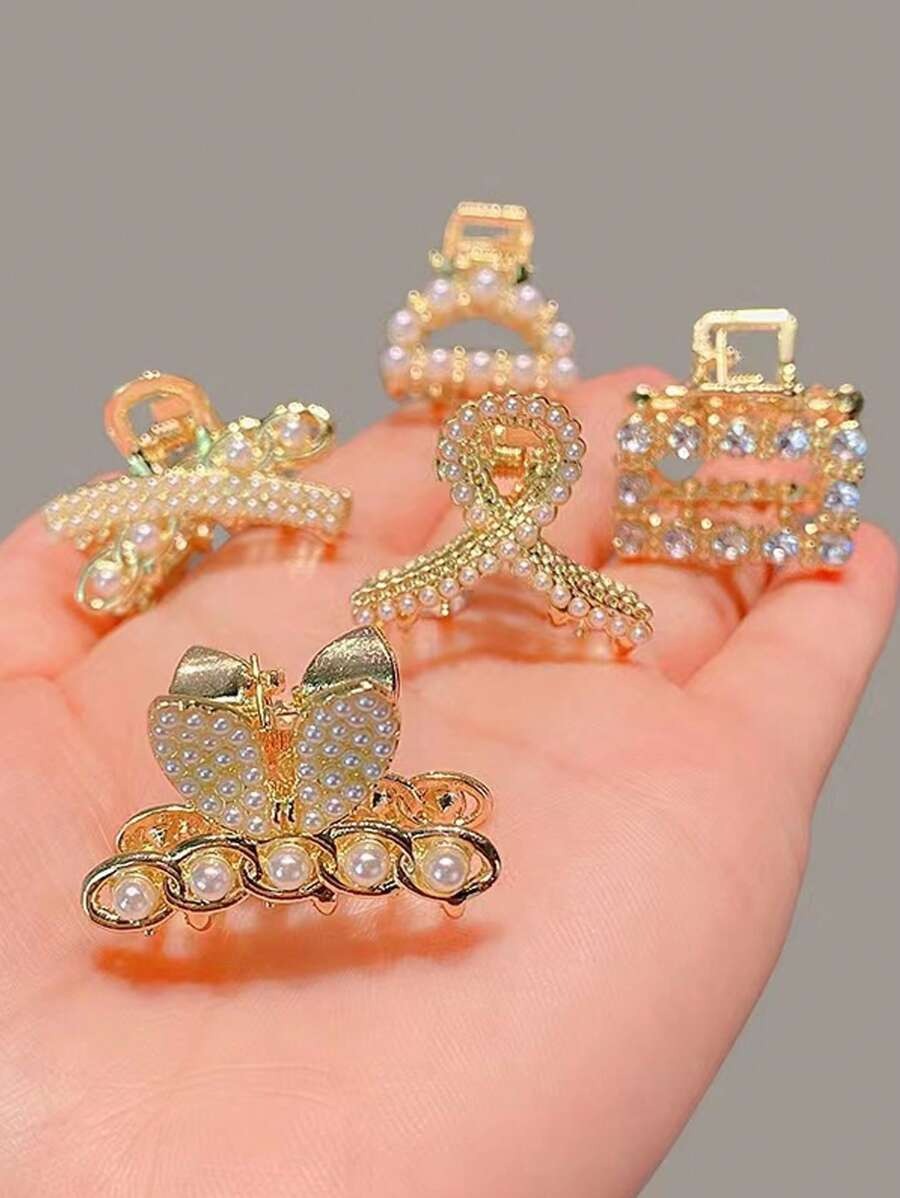 SHEIN مجموعة 10 قطع مشابك شعر معدنية مرصعة بالراين