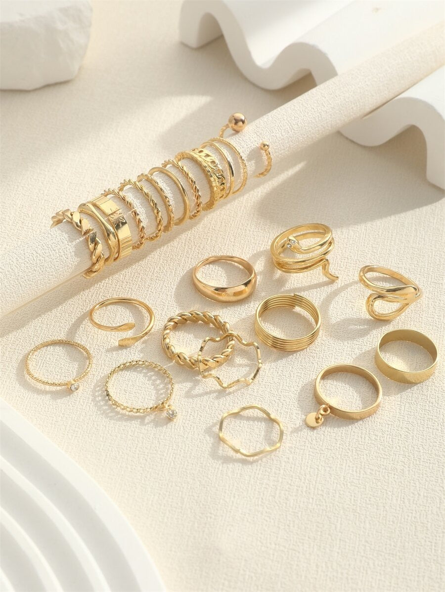 SHEIN طقم 24 خواتم حجر الراين بوهيمي هندسي