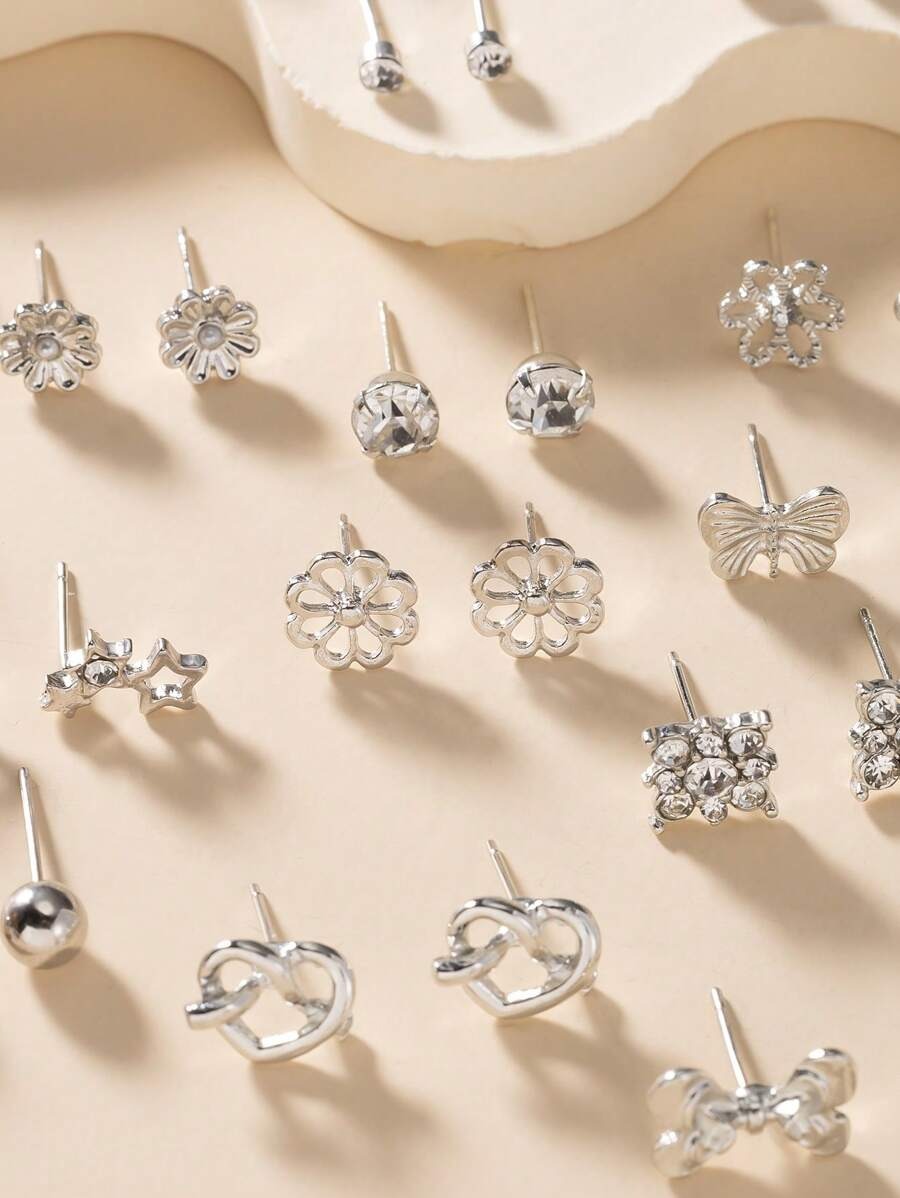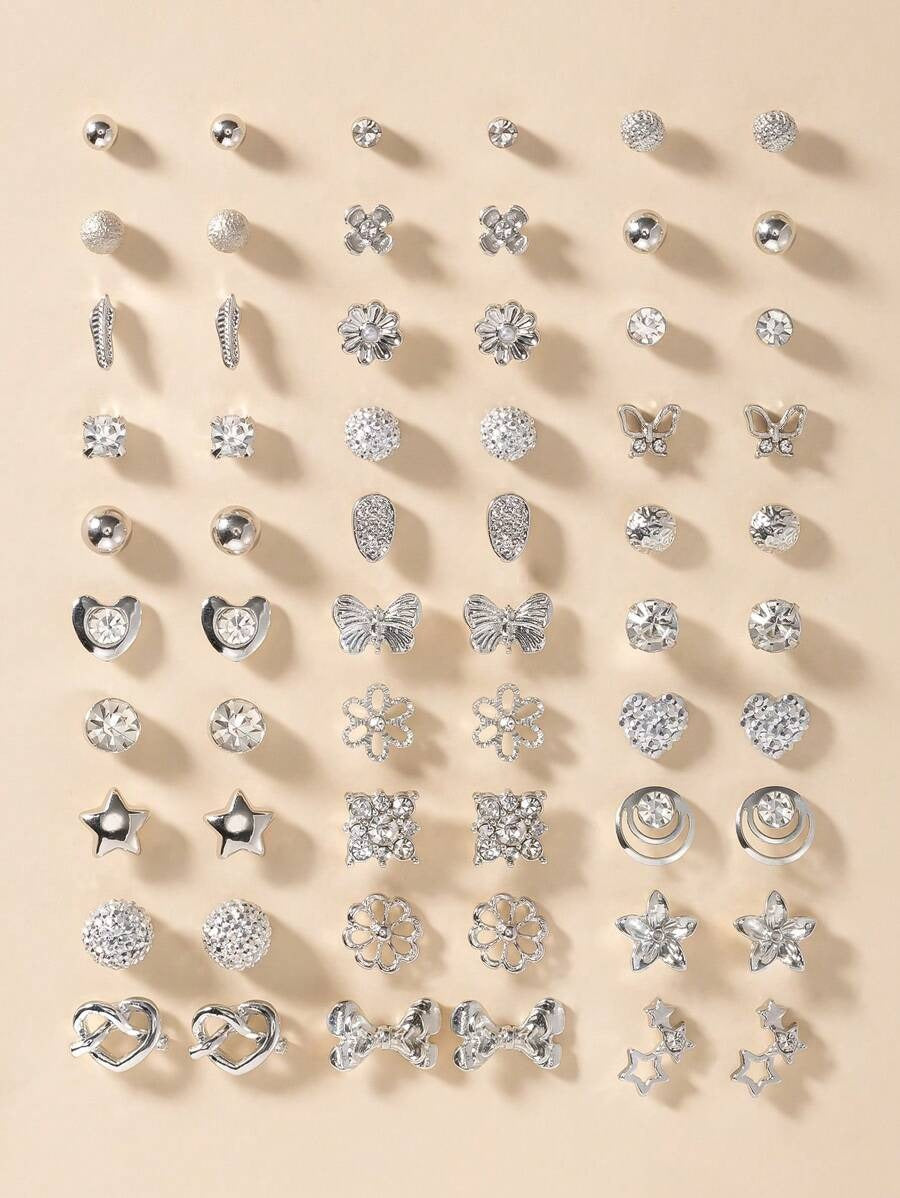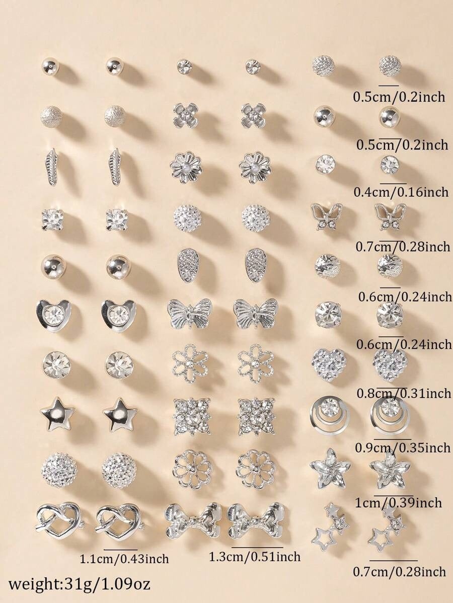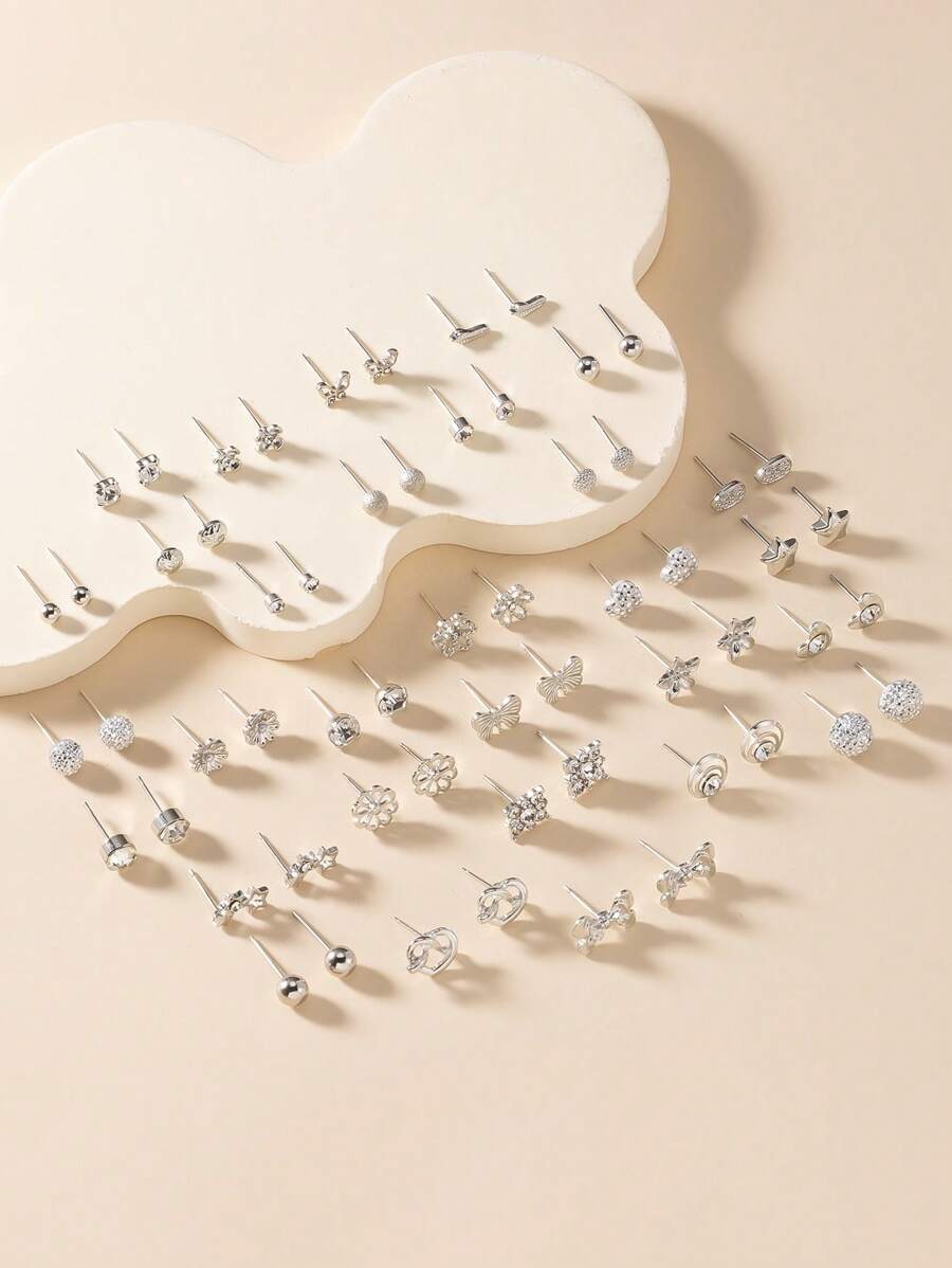 SHEIN مجموعة 30 قطعة أقراط معدنية لؤلؤية