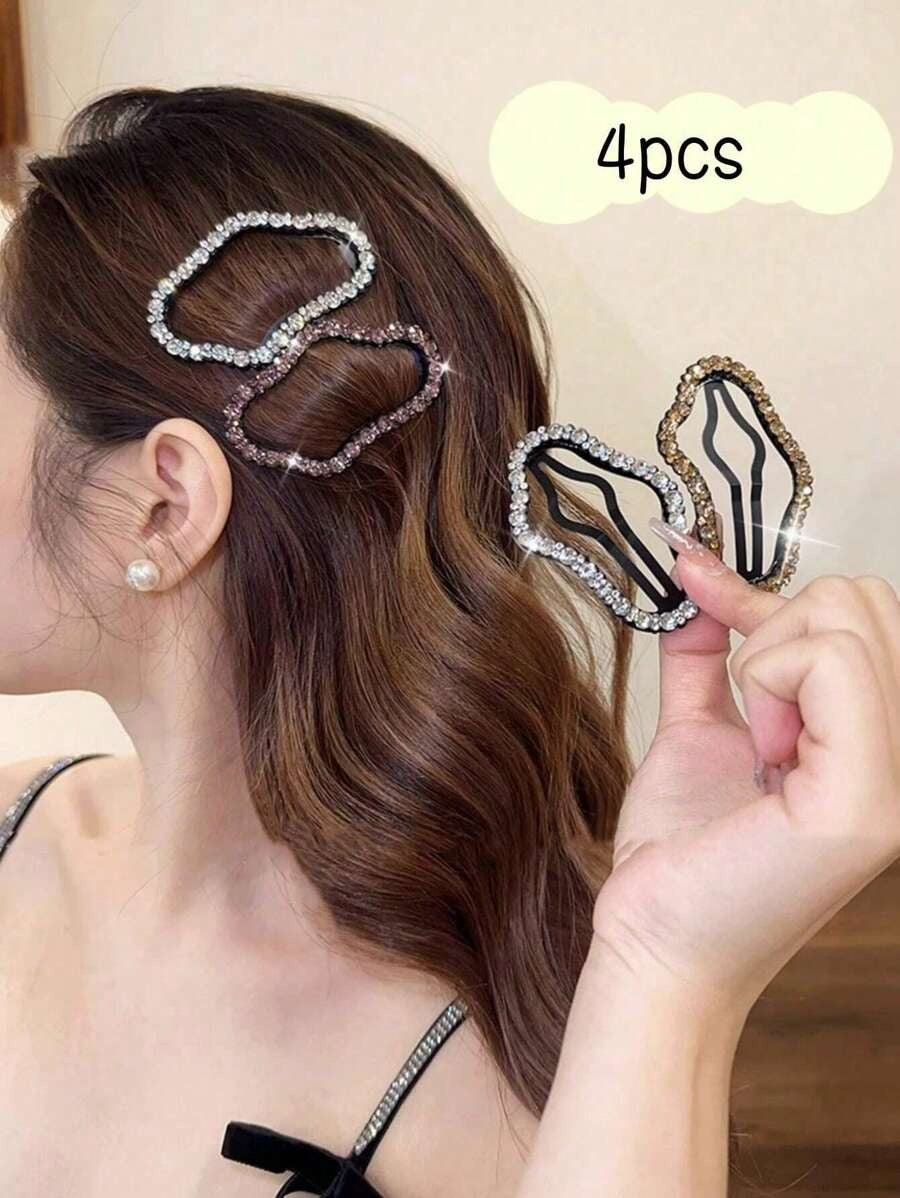 مجموعة 4 مشابك شعر بتصميم غير متماثل – ألوان جذابة 🎨