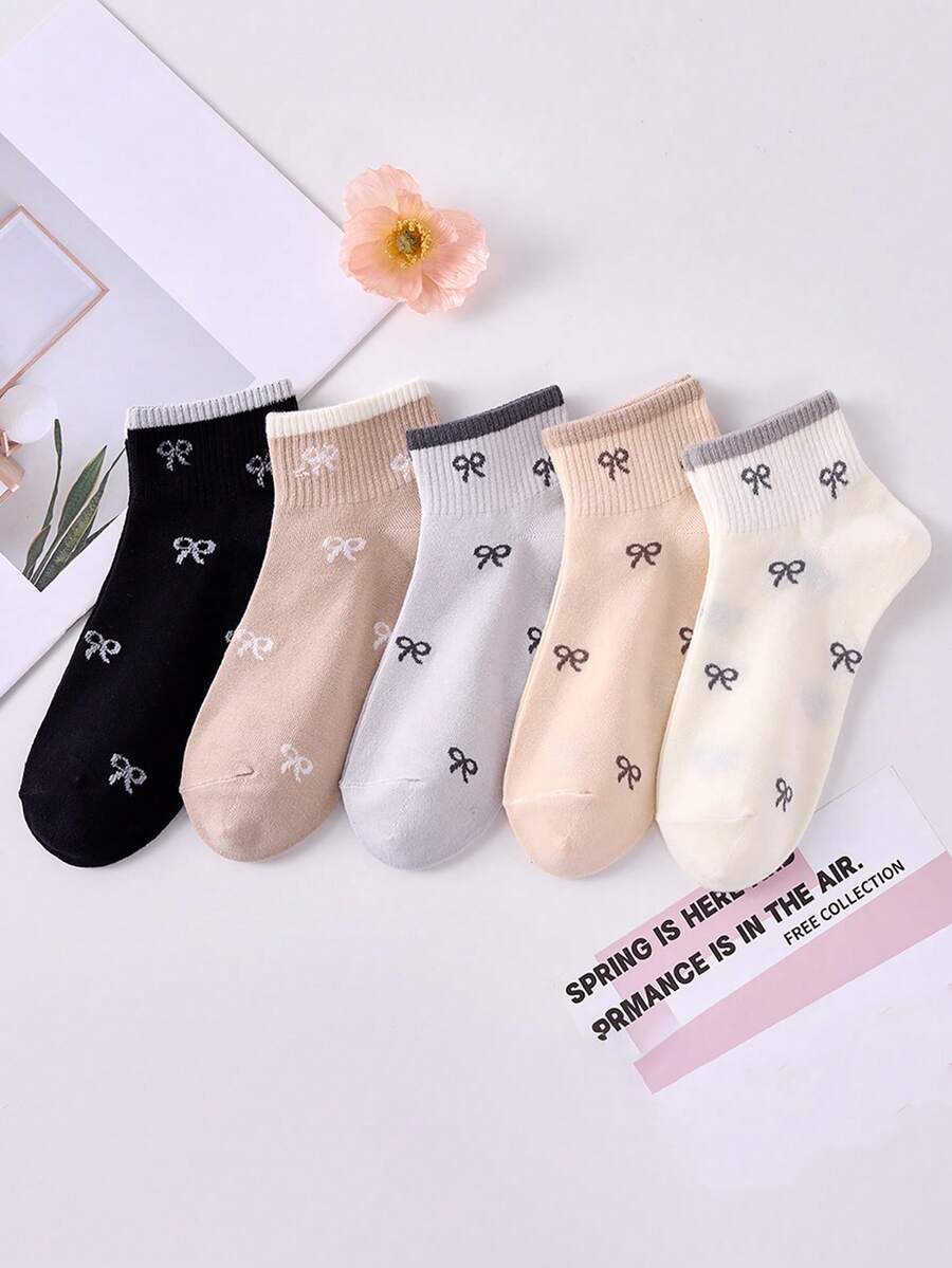 SHEIN مجموعة 5 أزواج جوارب نسائية بألوان عشوائية
