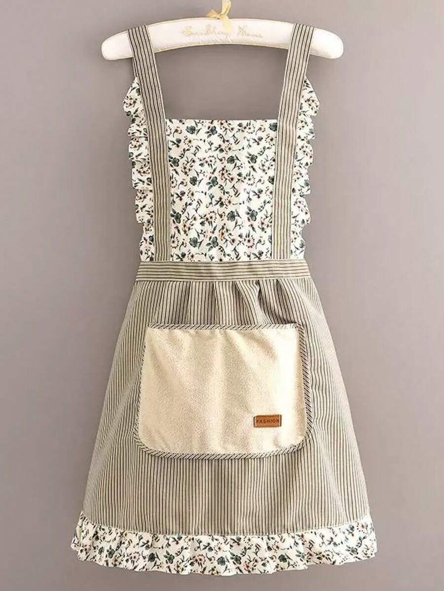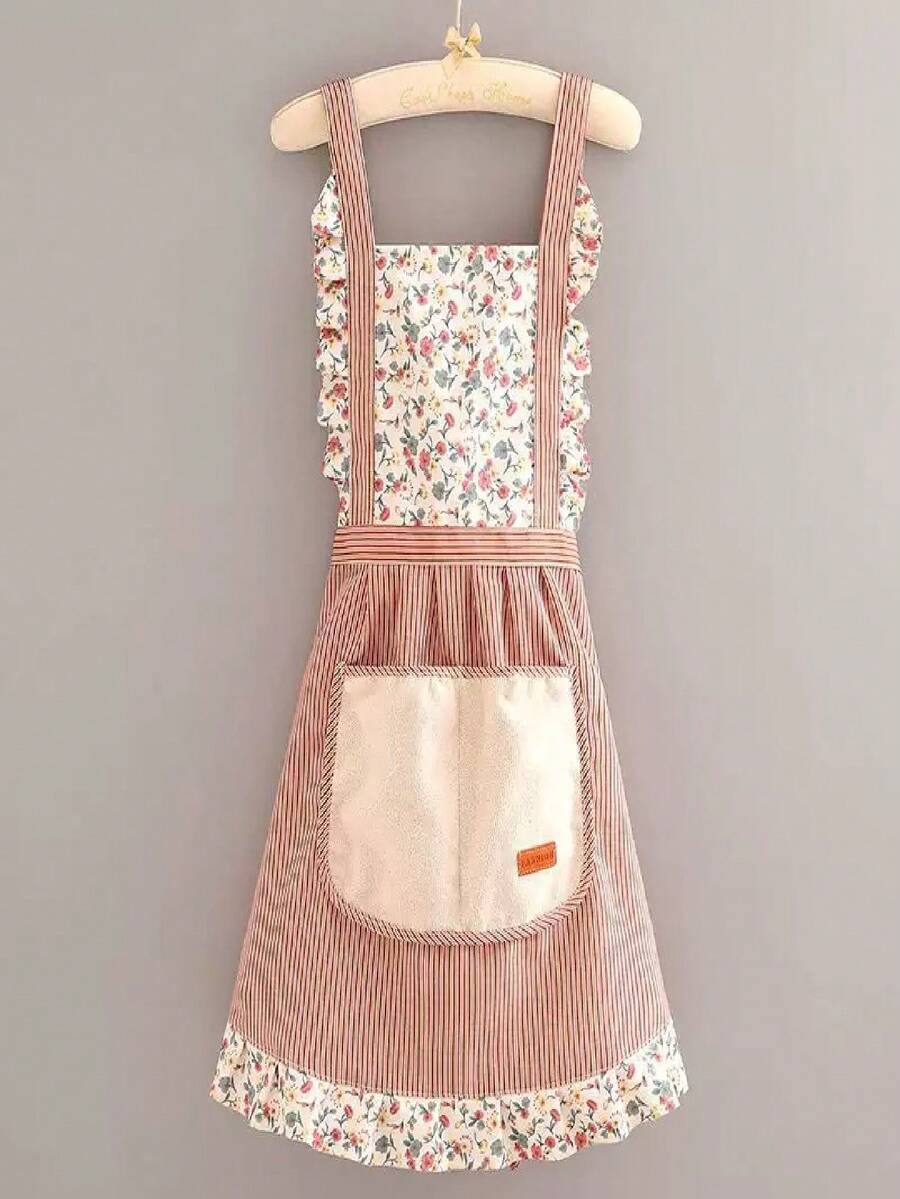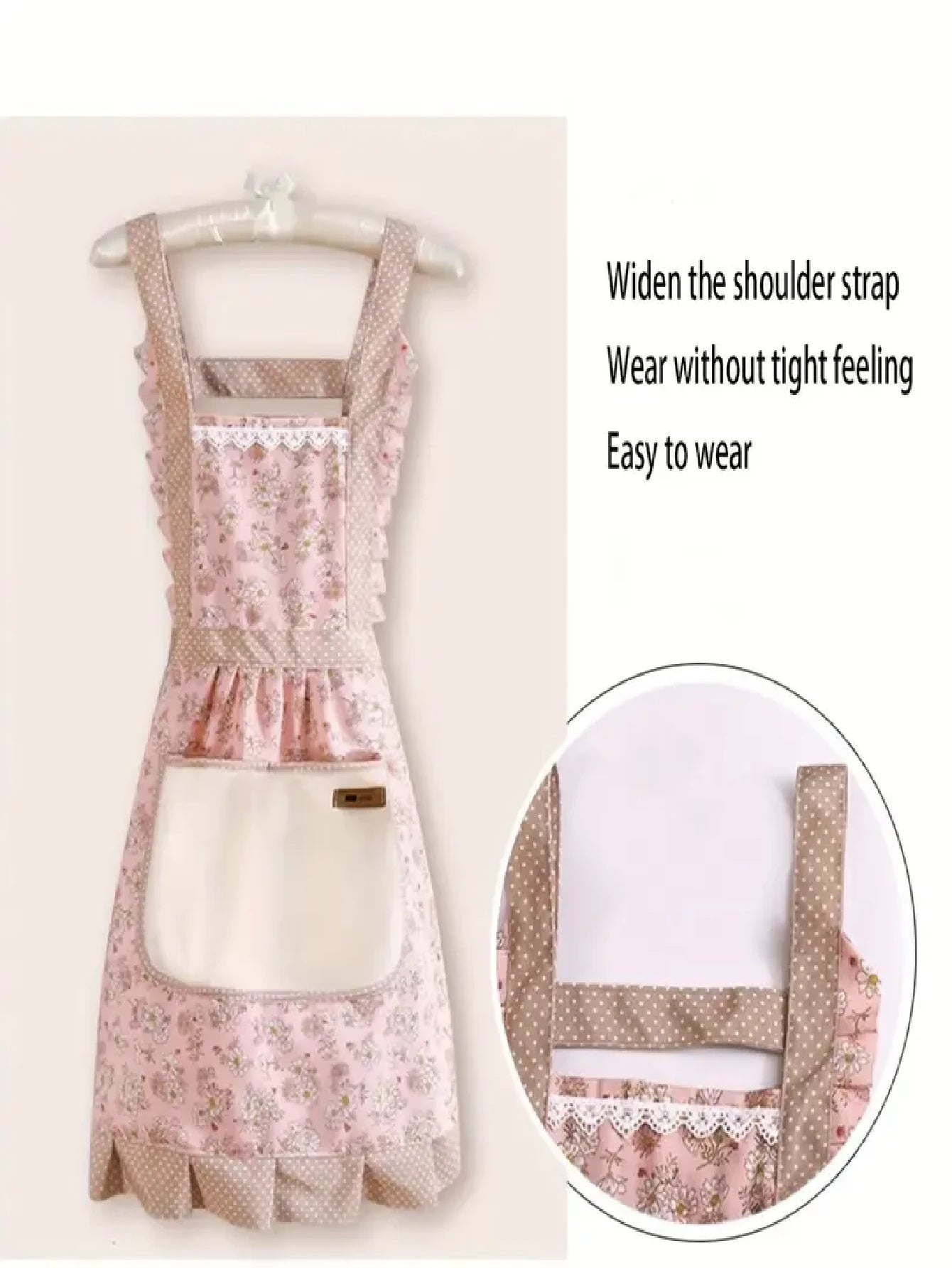 👩🍳🌸 مريلة مطبخ مقاومة للماء والزيت مزخرفة بالزهور